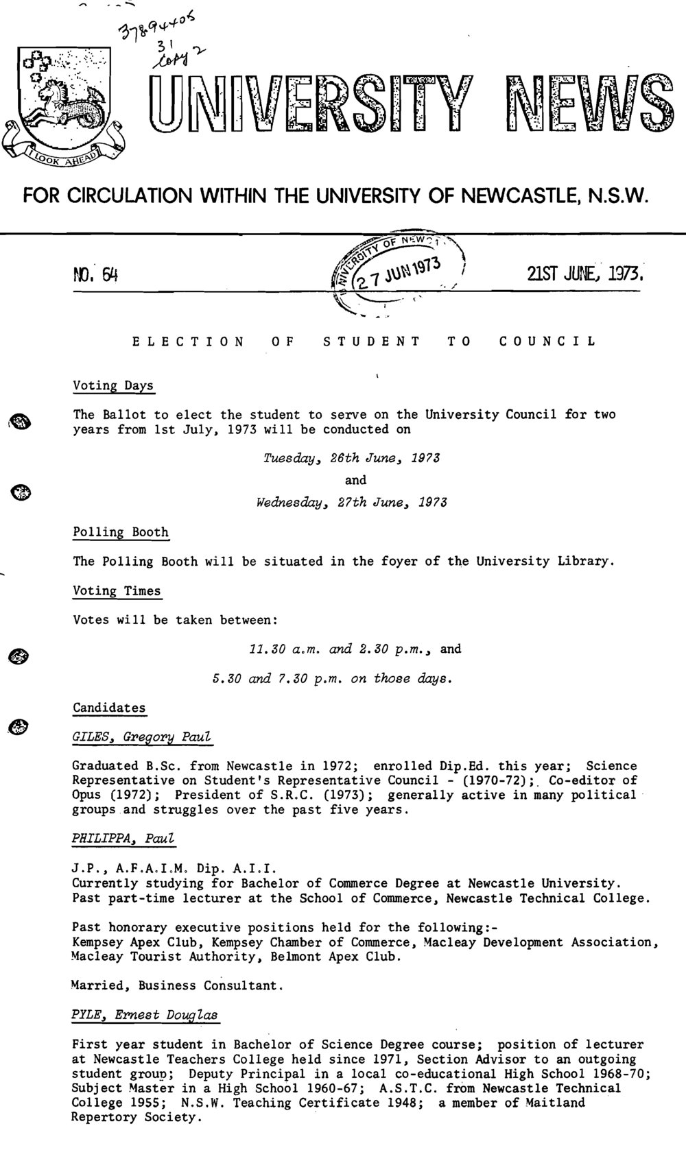 University News, The University of Newcastle, No. 64, 21 June 1973