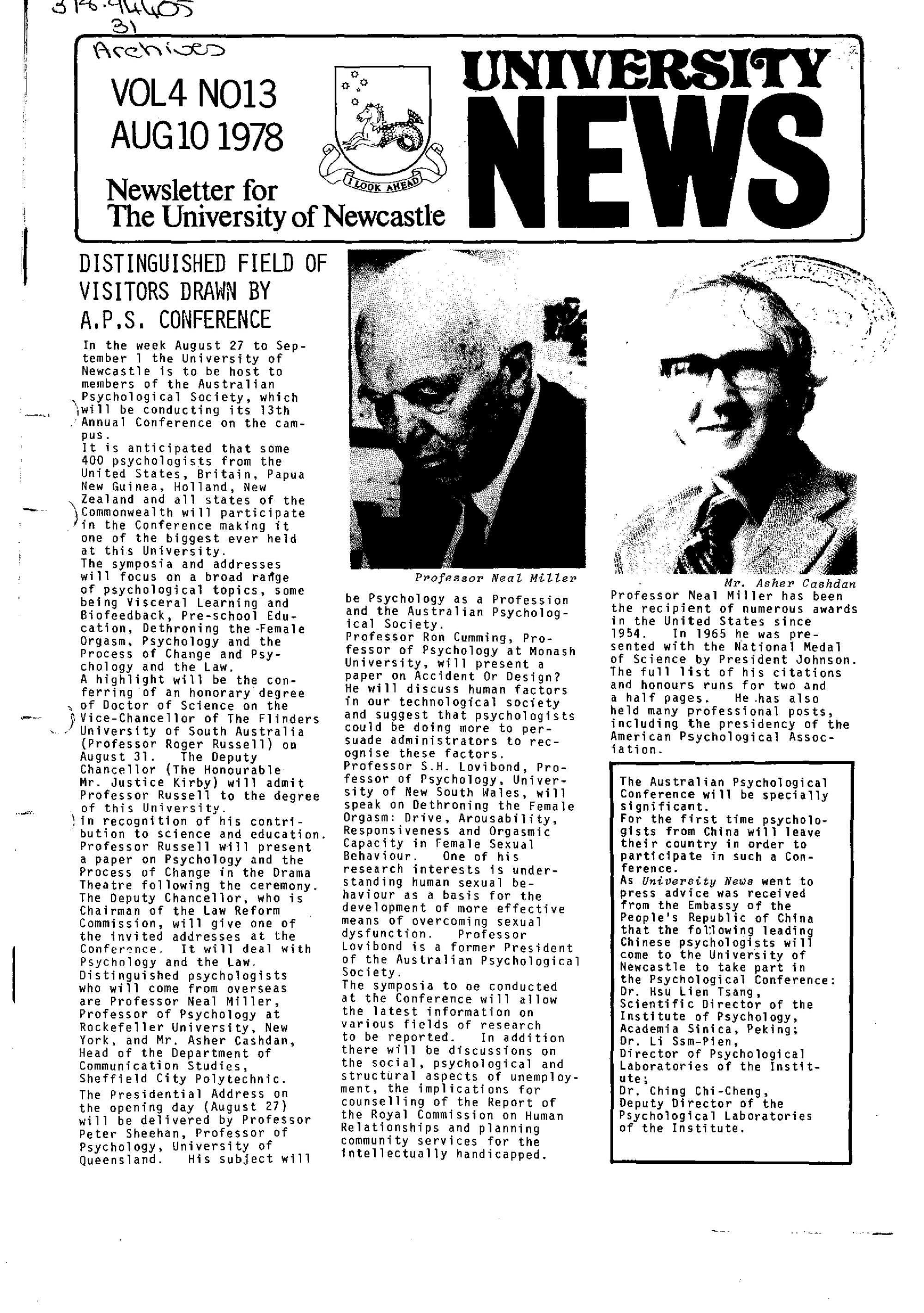 University of Newcastle (N.S.W.), The University News, Vol. 4, No. 13, August 10, 1978, [Archives Serial 24]. Living Histories, accessed 13/01/2026, https://livinghistories.newcastle.edu.au/nodes/view/59543