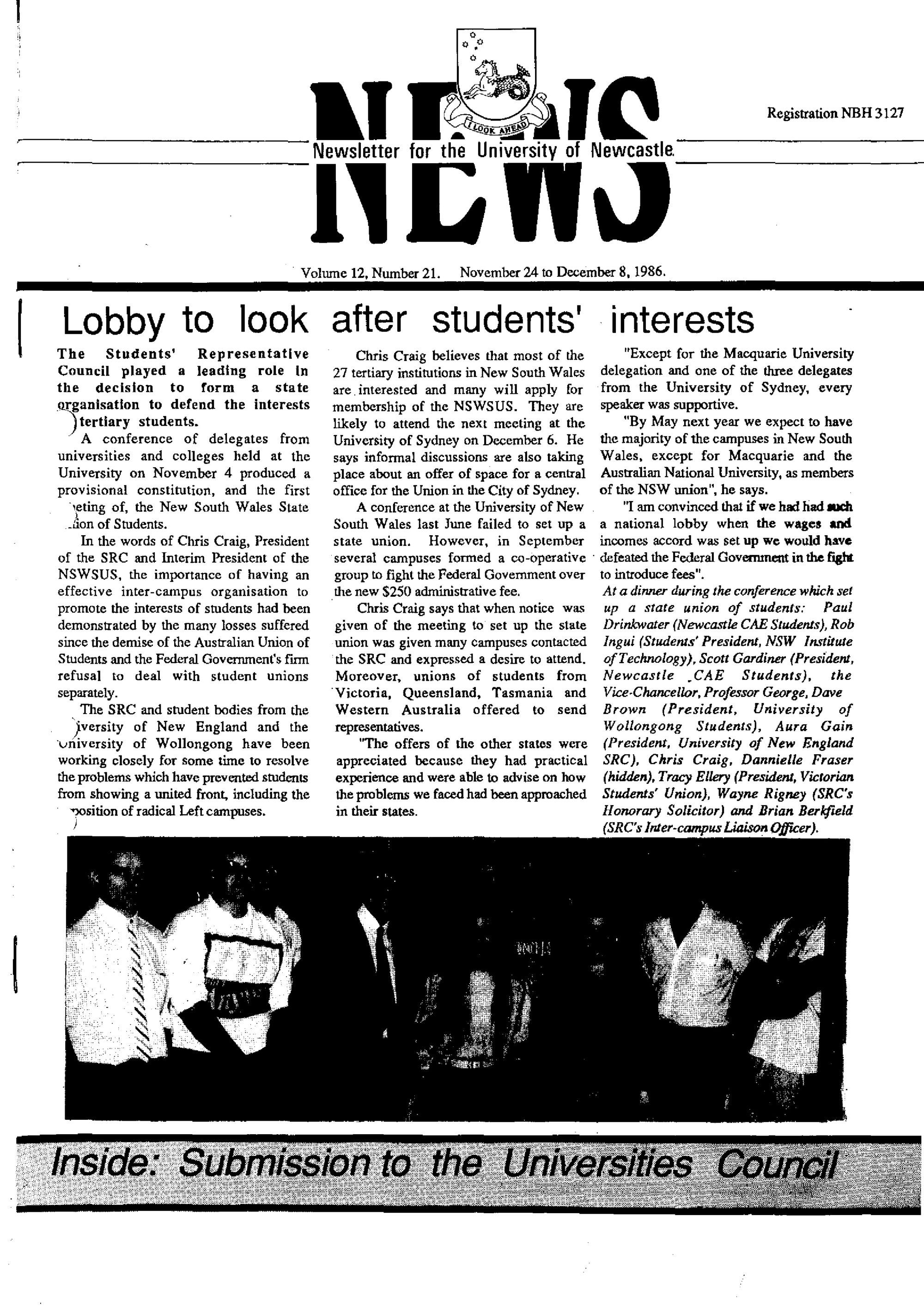 University of Newcastle (N.S.W.), The University News, Vol. 12, No. 21, November 24 - December 8, 1986, [Archives Serial 24]. Living Histories, accessed 04/04/2026, https://livinghistories.newcastle.edu.au/nodes/view/59697