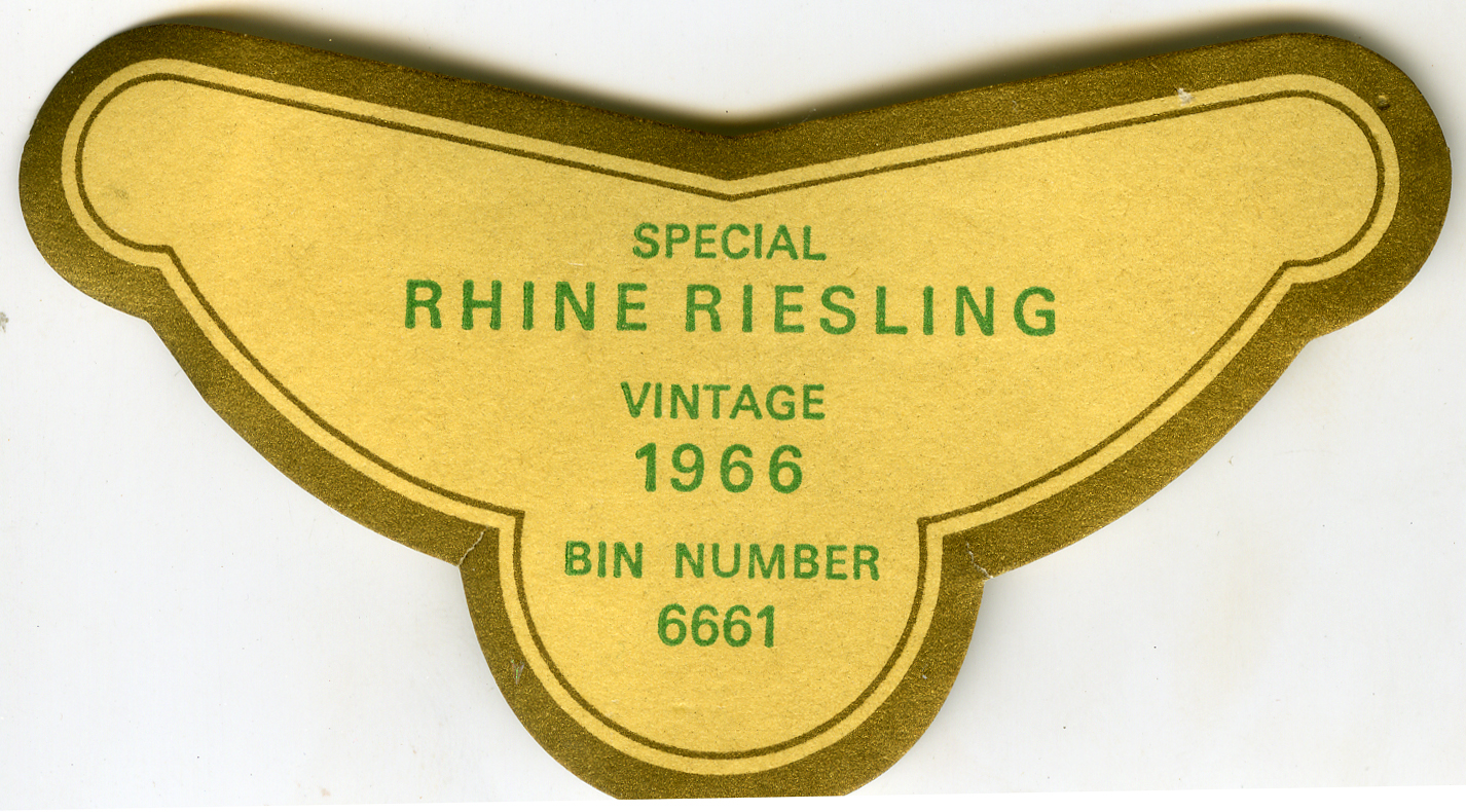Unidentified Vineyard, Rhine Riesling Wine Label (1966) (1966). Living Histories, accessed 19/03/2026, https://livinghistories.newcastle.edu.au/nodes/view/60338