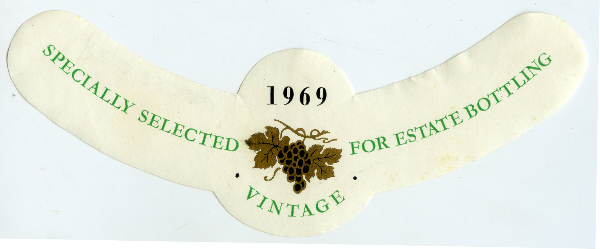 Date1969CollectorMorse, AllanDescriptionLabel reads "Specially selected for estate bottling. 1969 vintage".