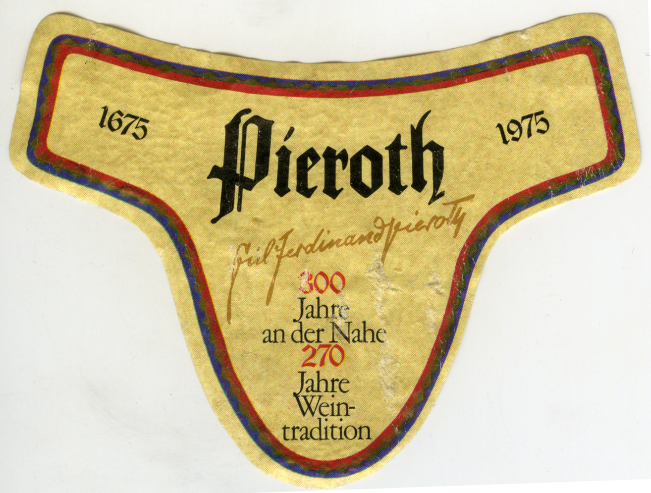 label reads "1675 - Pieroth - 1975 - 300 jahre an der nahe 270 jahre wein-tradition".