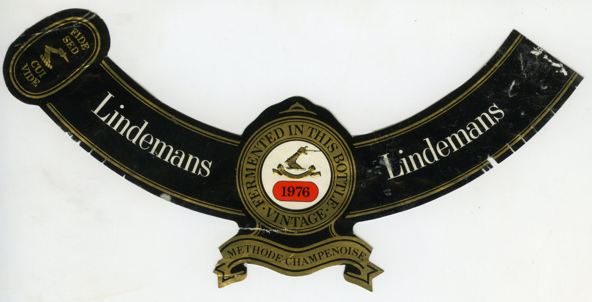 Label reads "Fide sed cui vide - Lindemans - Fermented in this bottled - 1976 vintage - methode champenoise".