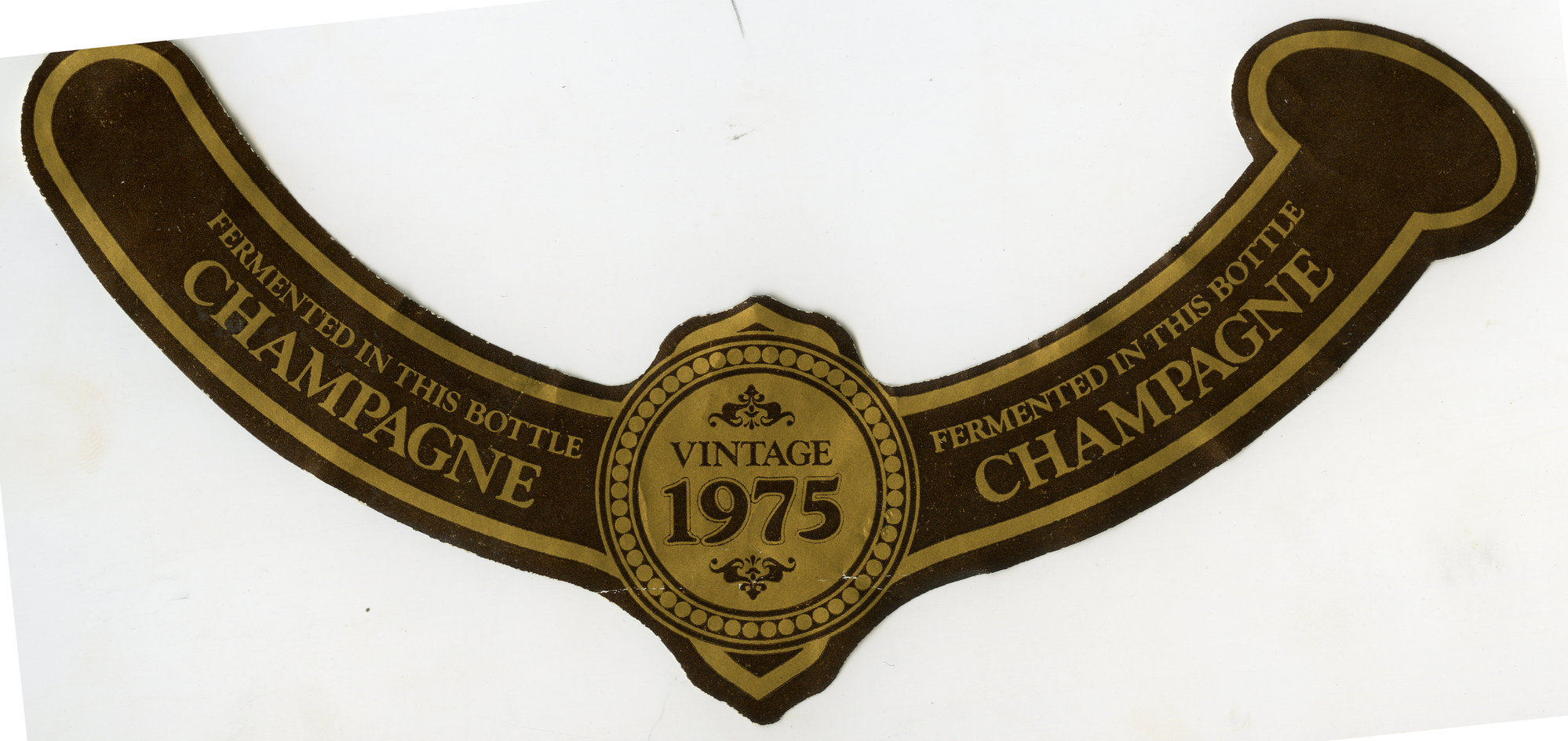 Label reads "Fermented in this bottle - Champagne - vintage 1975".