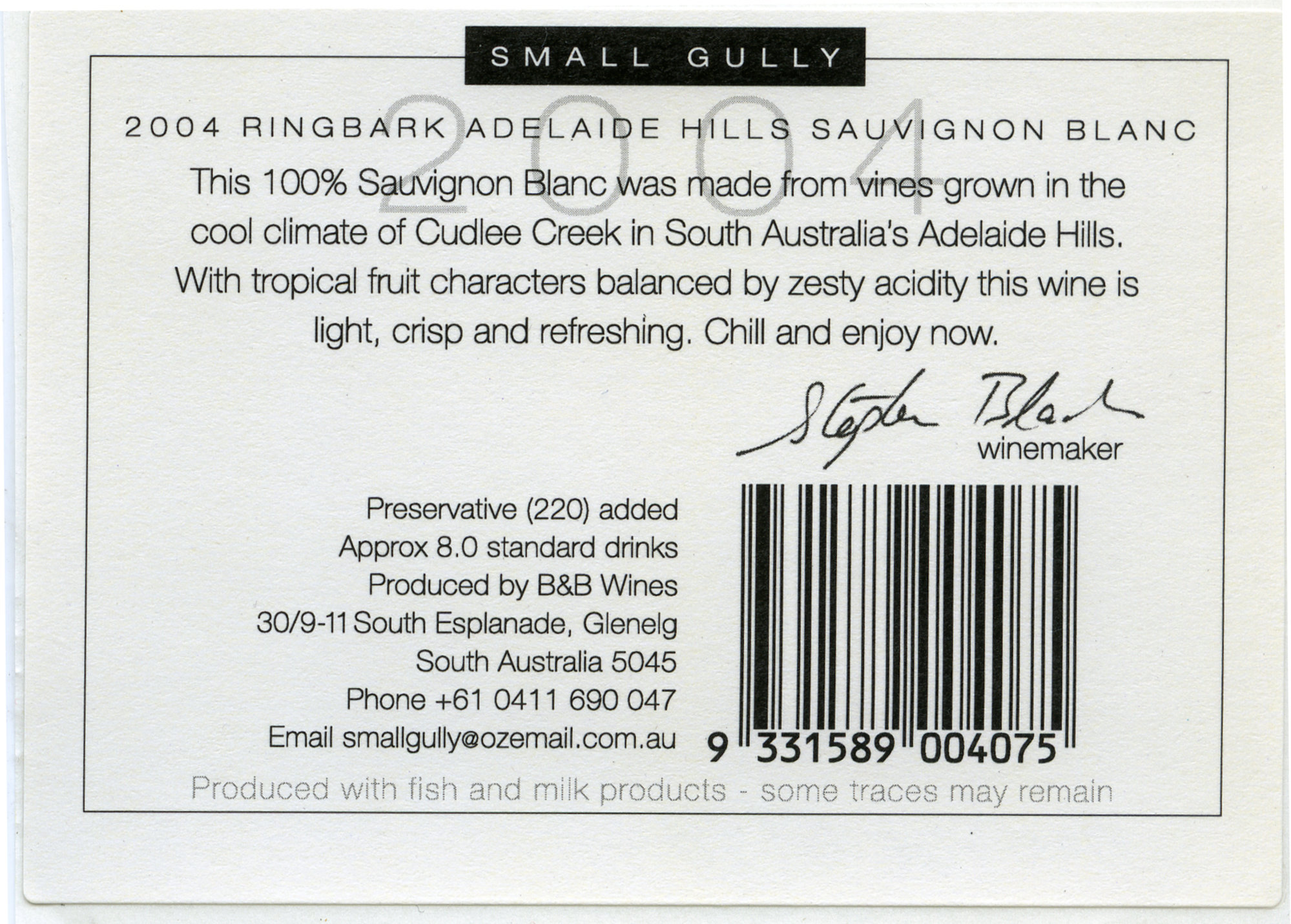 Small Gully Ringbark Label back (2004) (2004). Living Histories, accessed 12/02/2026, https://livinghistories.newcastle.edu.au/nodes/view/61041