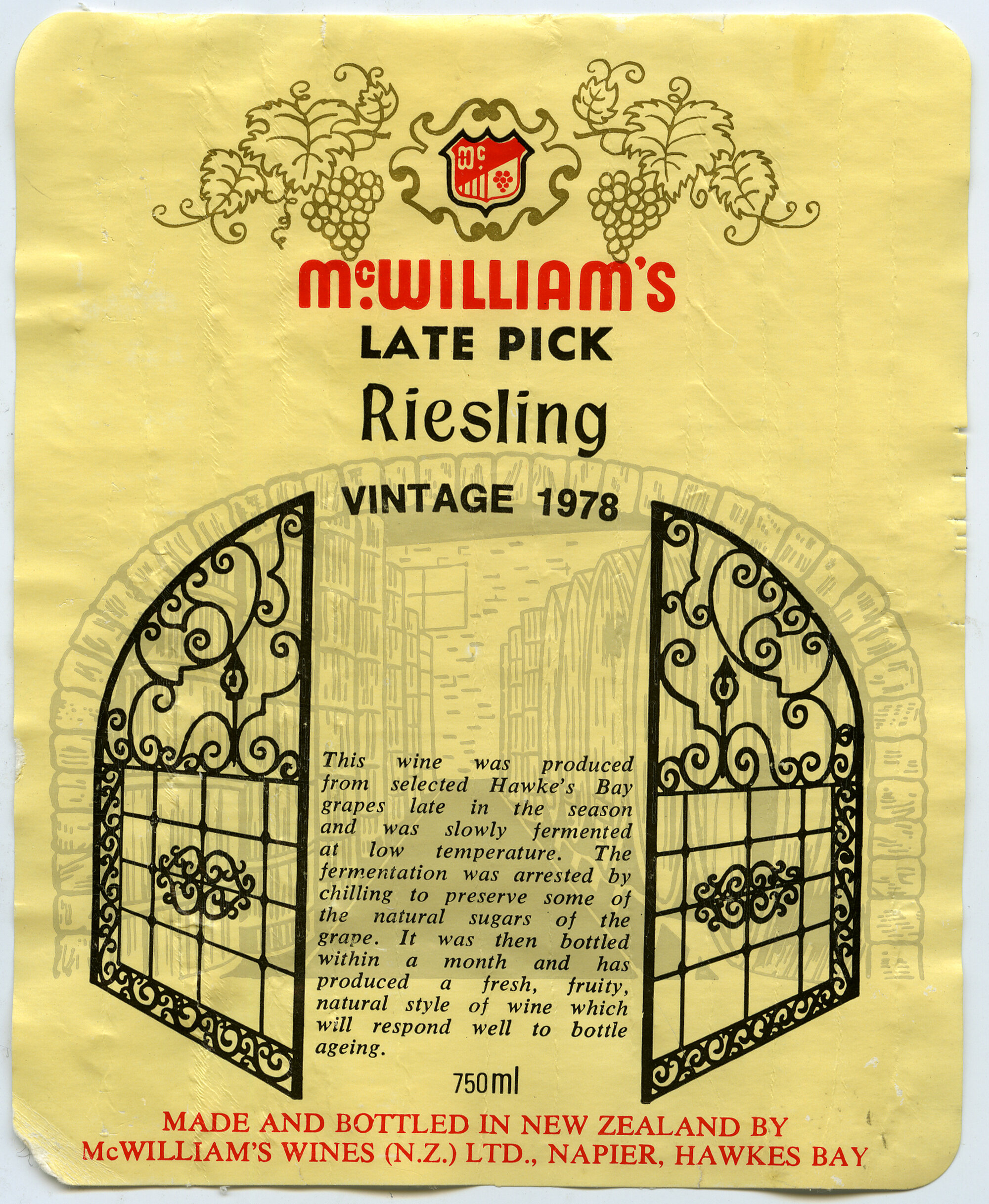 McWilliam's Napier New Zealand Late Pick Label (1978) (1978). Living Histories, accessed 14/04/2026, https://livinghistories.newcastle.edu.au/nodes/view/61065