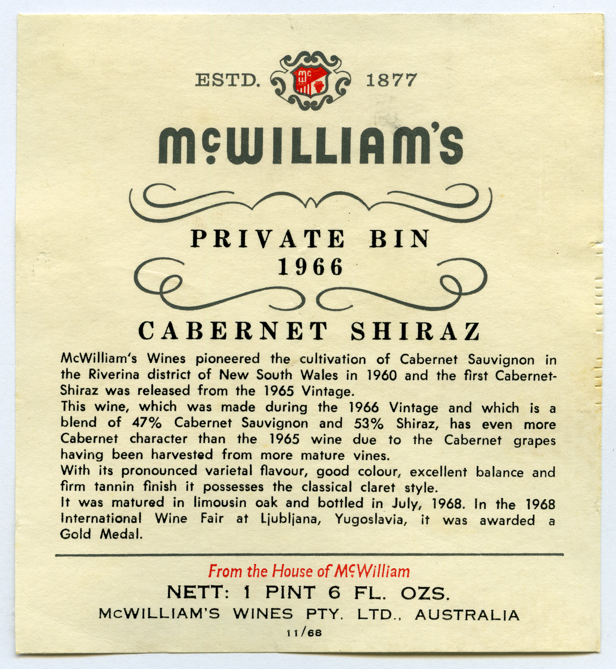 McWilliam's Hanwood Vineyard Label (1966) (1966). Living Histories, accessed 08/03/2026, https://livinghistories.newcastle.edu.au/nodes/view/61100