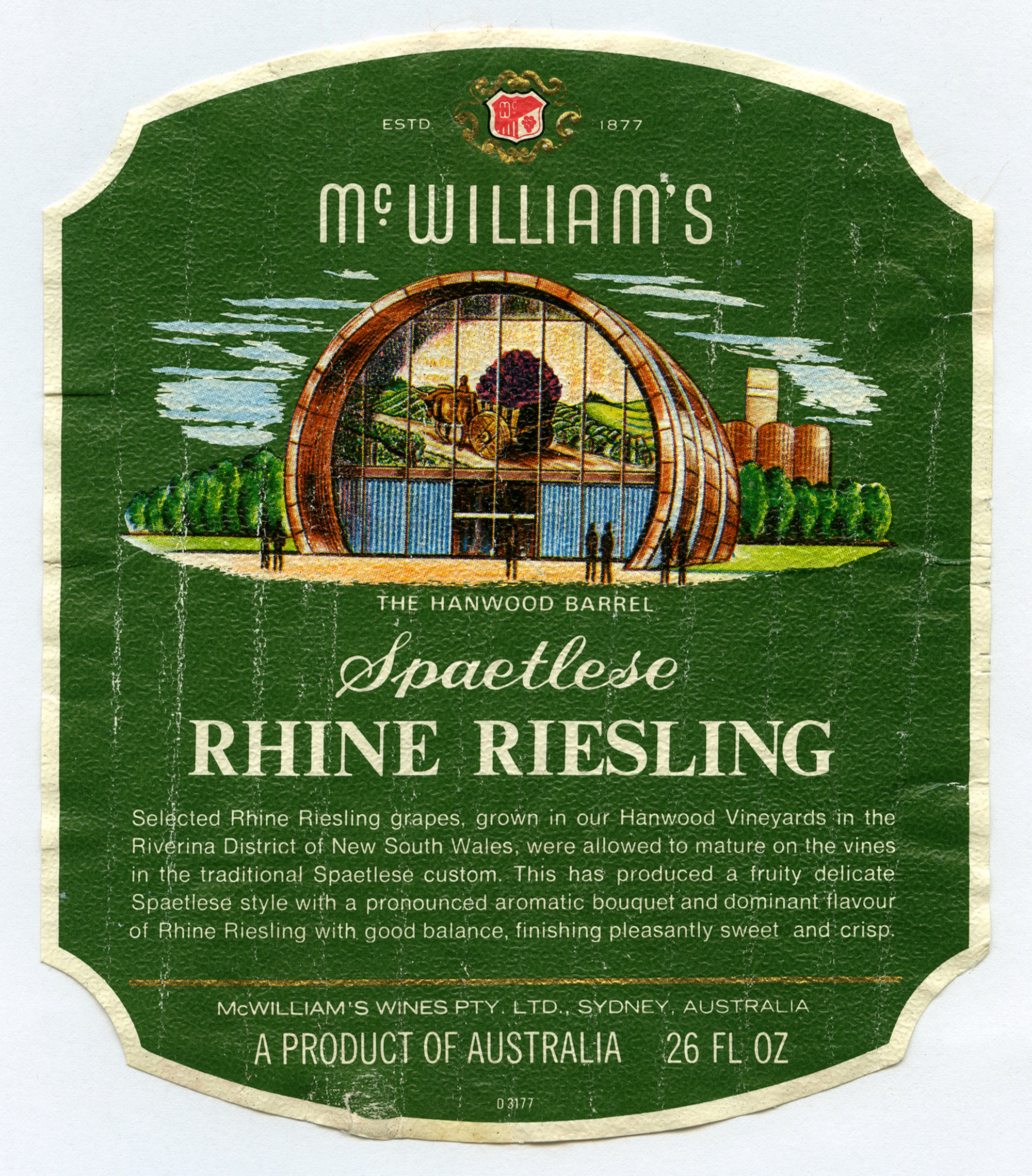 McWilliam's Hanwood Vineyard Label front (1973) (1973). Living Histories, accessed 17/04/2026, https://livinghistories.newcastle.edu.au/nodes/view/61140
