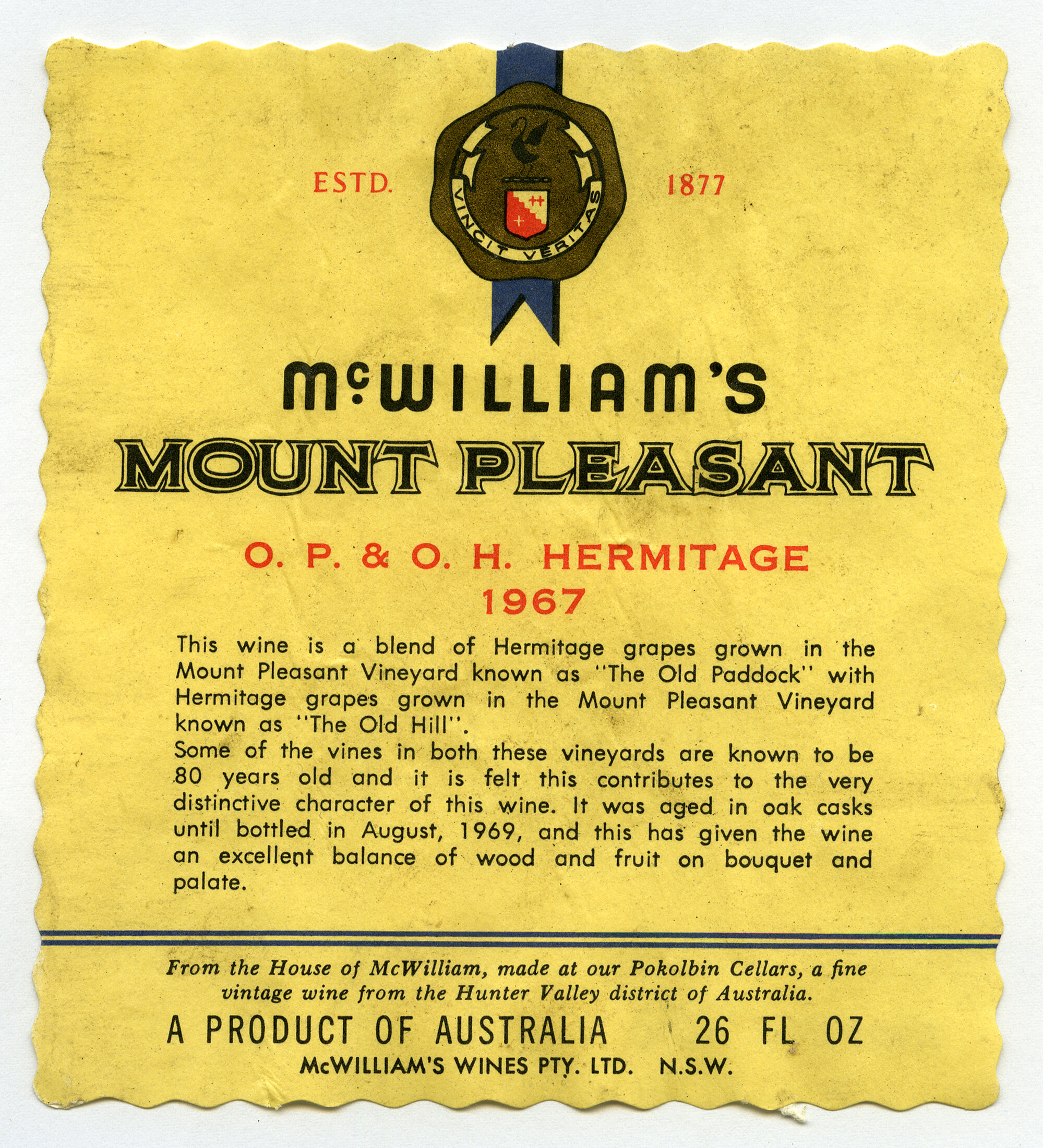 McWilliam's Mount Pleasant Label (1967) (1967). Living Histories, accessed 09/03/2026, https://livinghistories.newcastle.edu.au/nodes/view/61152