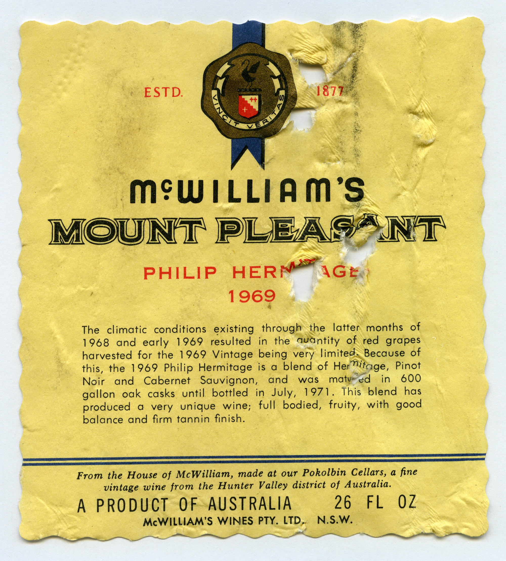 McWilliam's Mount Pleasant Label (1969) (1969). Living Histories, accessed 16/04/2026, https://livinghistories.newcastle.edu.au/nodes/view/61175