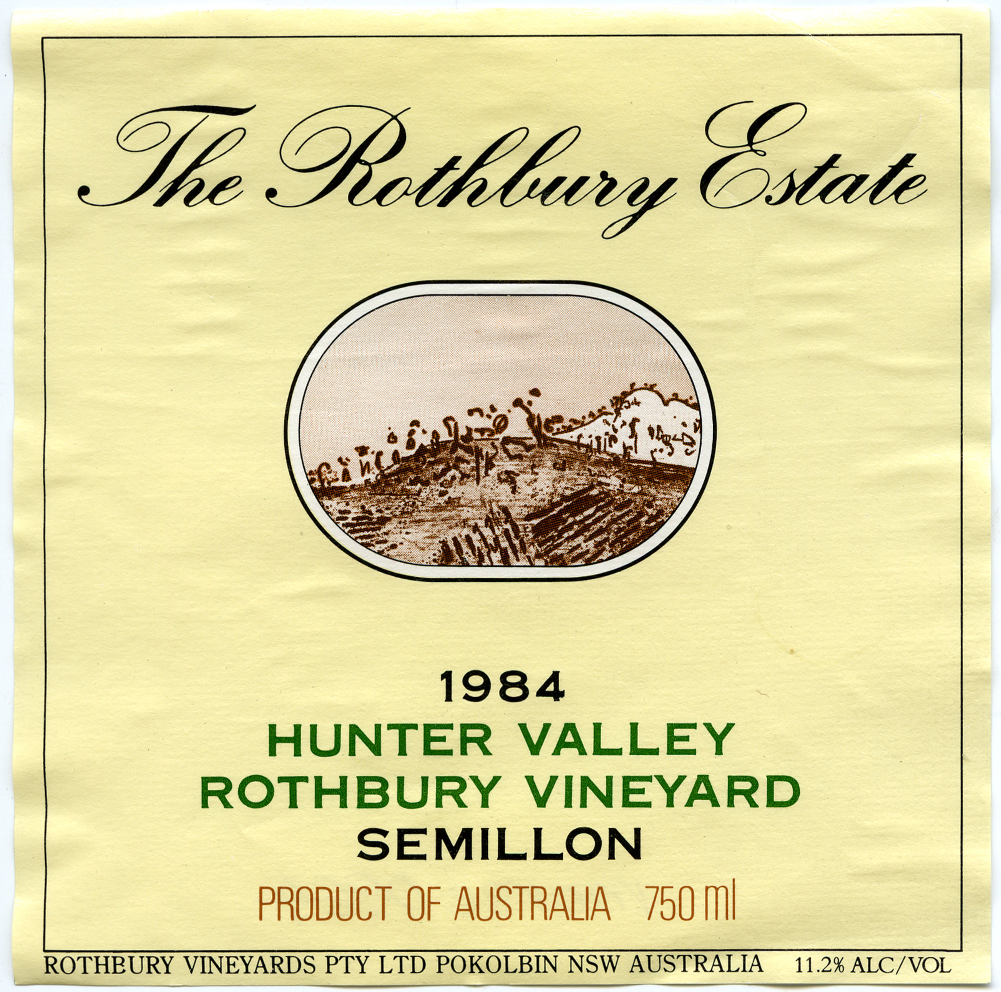 Date1984Wine MakerGary SissinghWineryRothbury Estate VineyardCollectorMorse, AllanType of WineSemillonLanguageEnglishDescriptionLabel reads: "The Rothbury Estate. 1984 Hunter Valley. Rothbury Vineyard. Semillon. Product of Australia. 750ml. Rothbury vineyards PTY LTD. Broke road, Pokolbin NSW Australia. Alc by vol 11.2%."