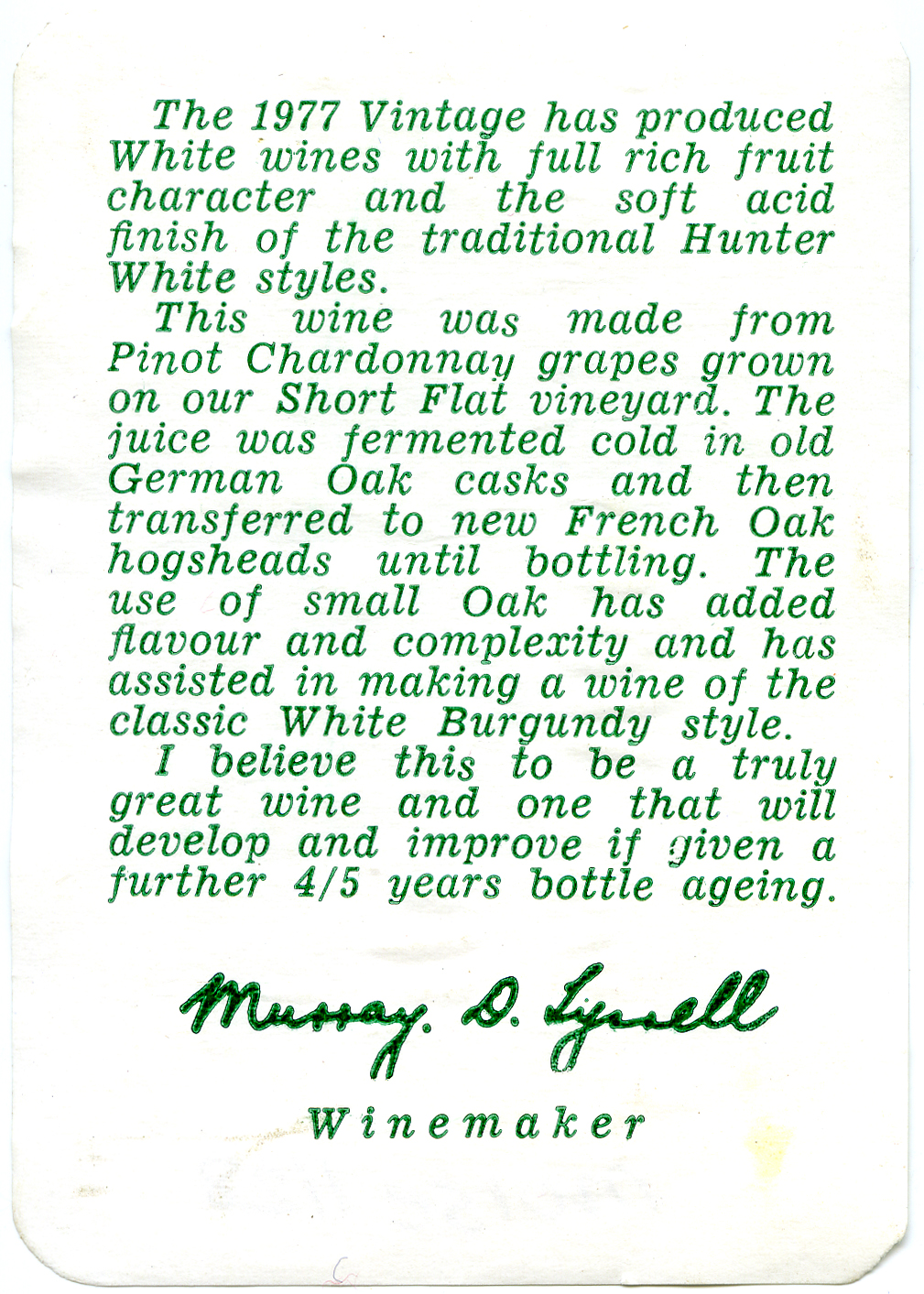 Tyrrell's Wine Pinot Chardonnay (1977) (1977). Living Histories, accessed 19/03/2026, https://livinghistories.newcastle.edu.au/nodes/view/61386