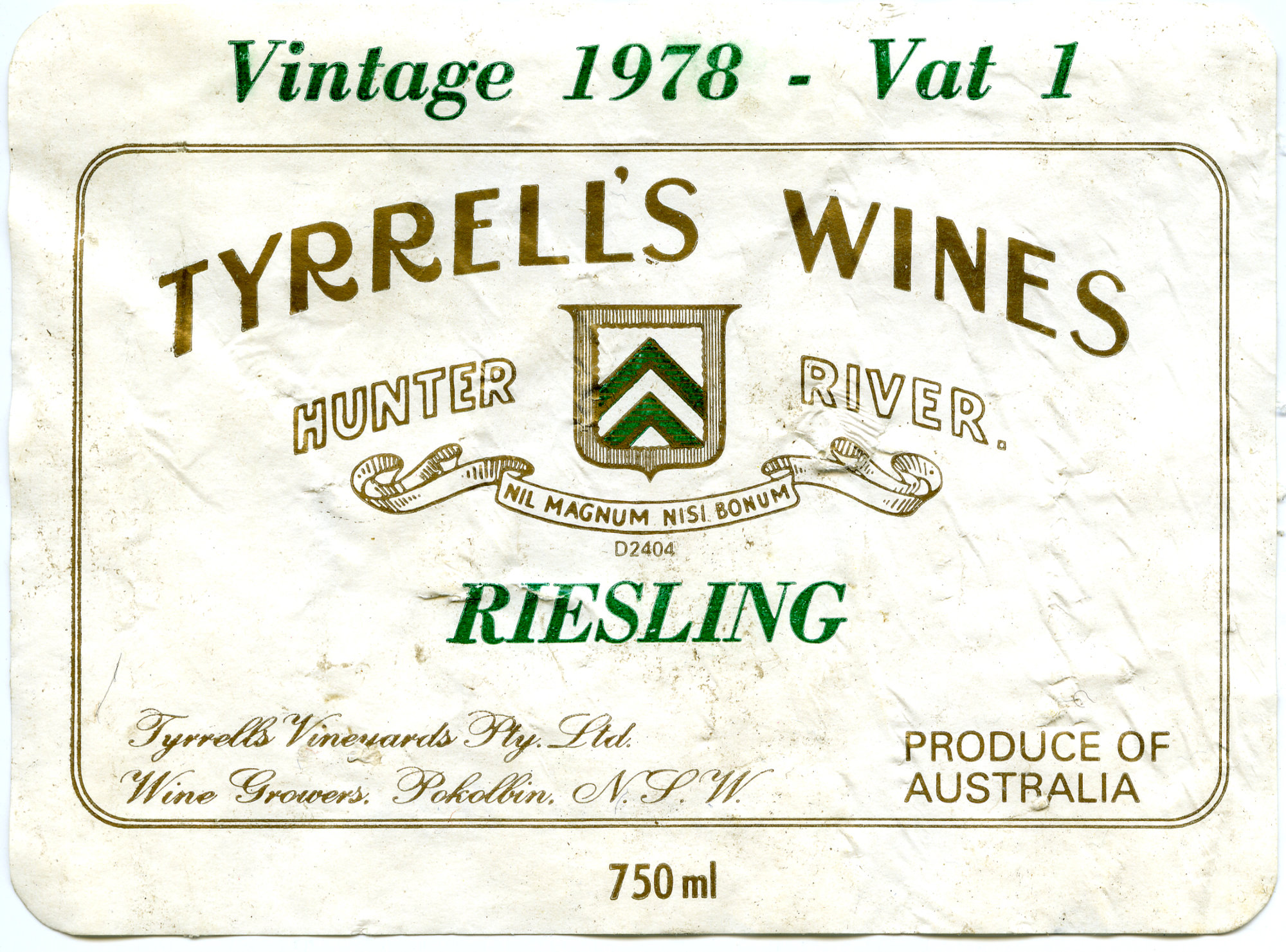 Geotag[1] SubjectMORSE1135Tyrrell's WinesWine Labels -- New South Wales -- Hunter River ValleyWine labels -- DesignWine industry -- AustraliaWine -- MarketingVisual communicationInstructionscopy. Tyrrell's Wines Riesling. vintage 1978 vat 1CollectionMorse Wine Labels
