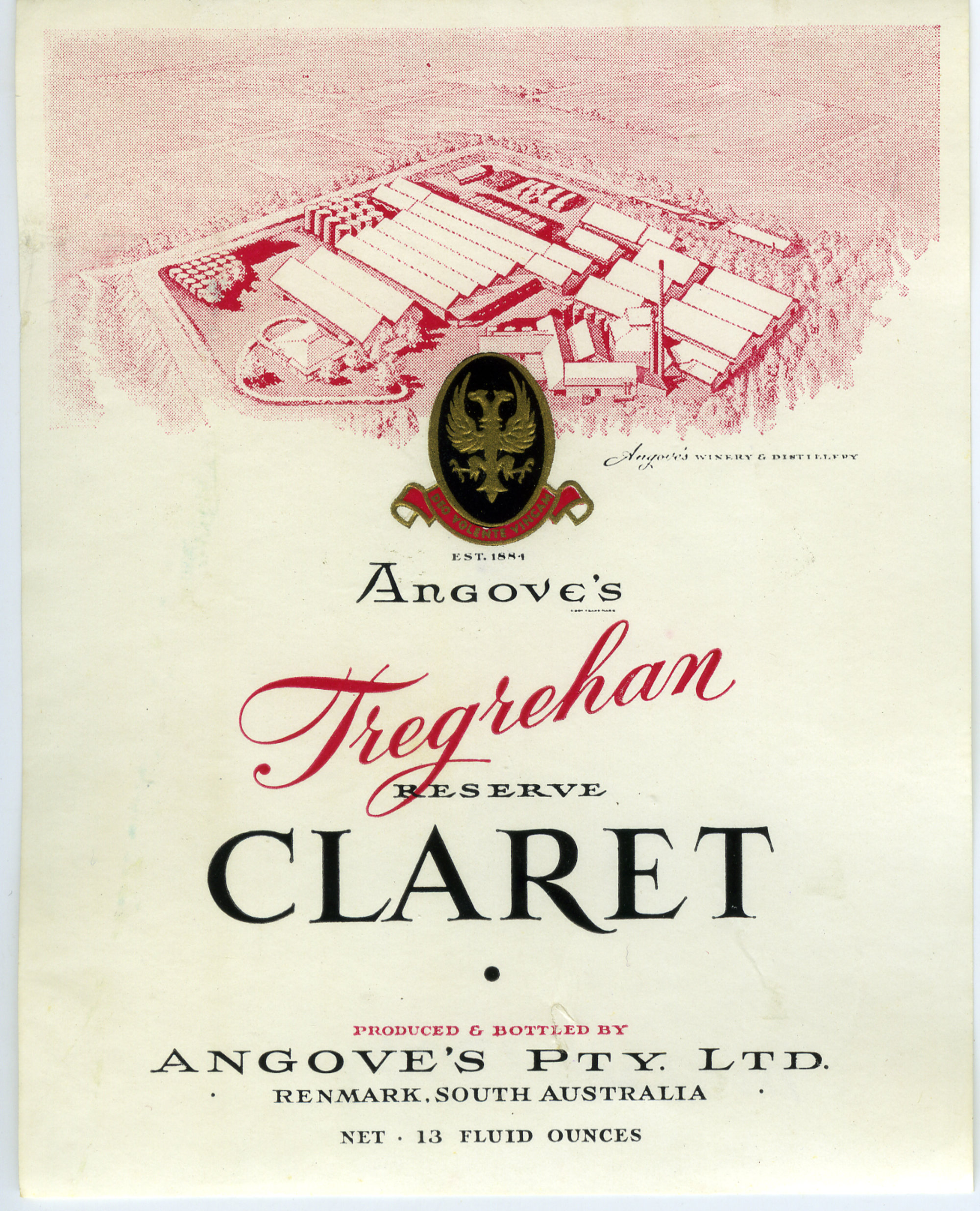 Angove's wine label for a bottle of Tregrehan Reserve Claret [n.d.]. Living Histories, accessed 05/03/2026, https://livinghistories.newcastle.edu.au/nodes/view/61564