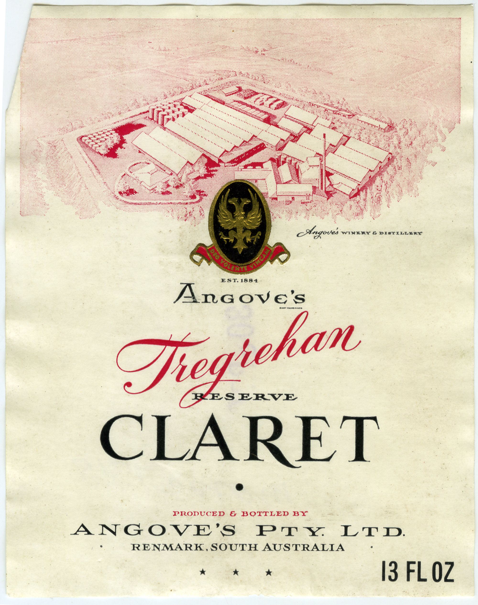 Angove's wine label for a bottle of Tregrehan Reserve Claret [n.d.]. Living Histories, accessed 15/03/2026, https://livinghistories.newcastle.edu.au/nodes/view/61573