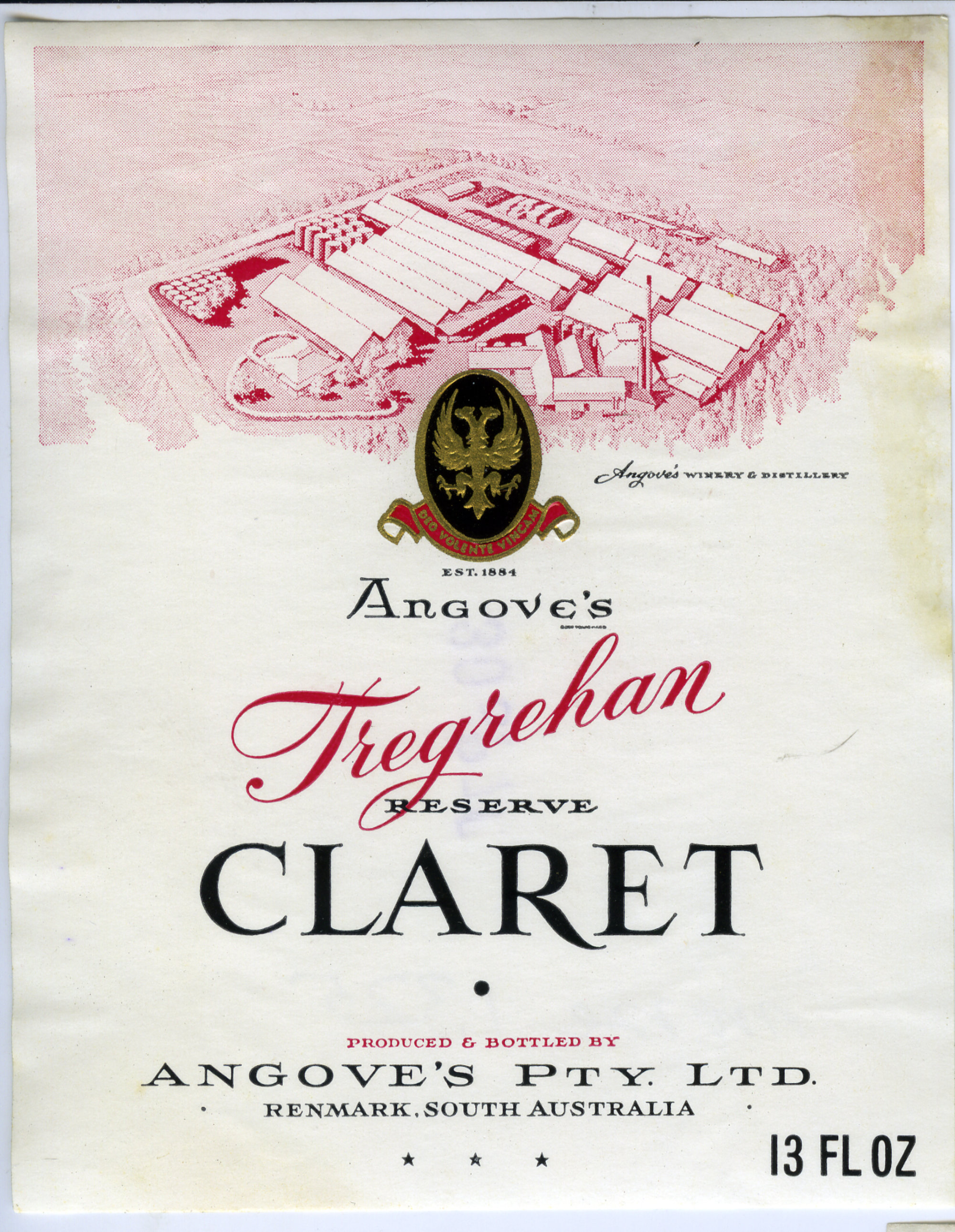 Angove's wine label for a bottle of Tregrehan Reserve Claret [n.d.]. Living Histories, accessed 08/03/2026, https://livinghistories.newcastle.edu.au/nodes/view/61583