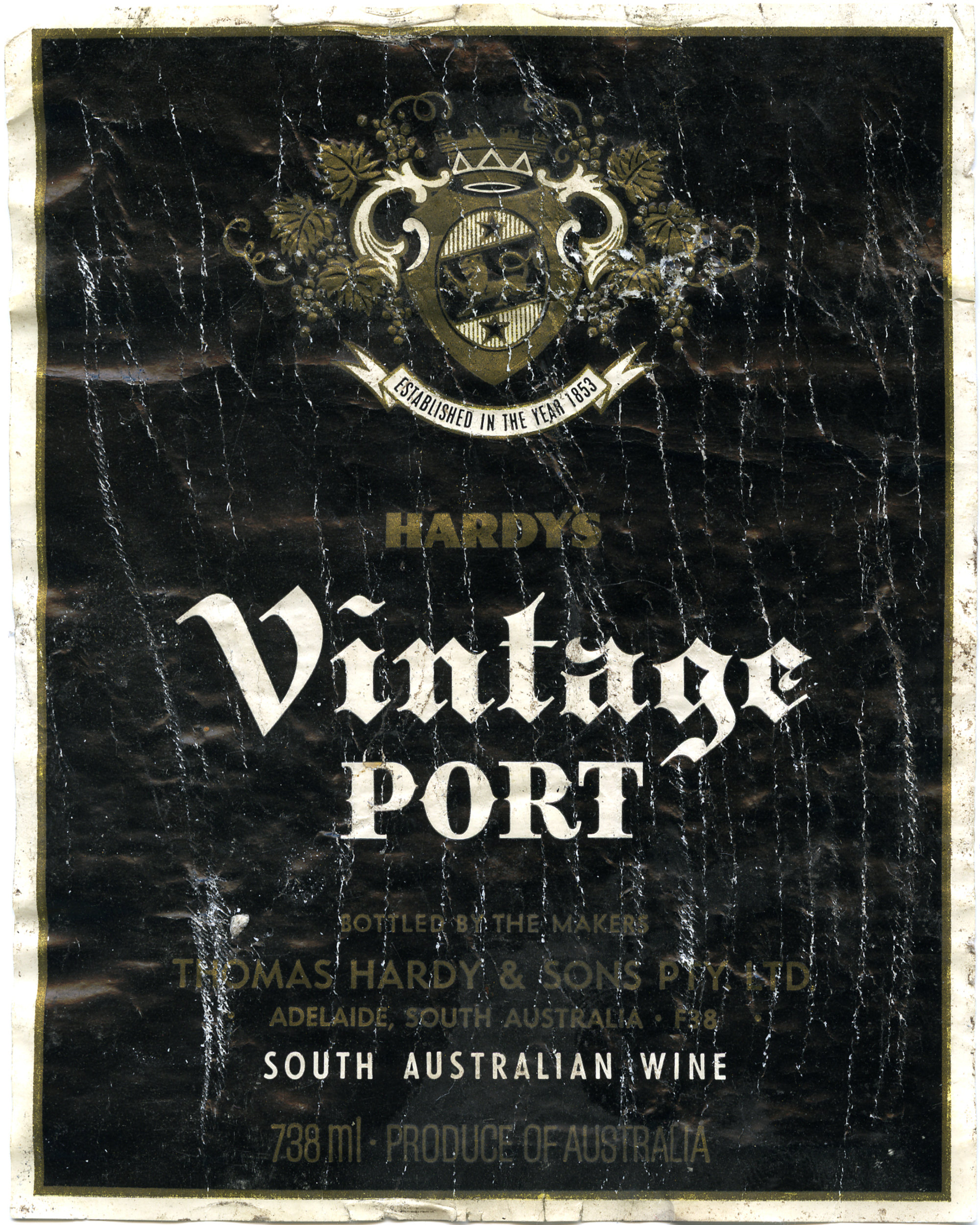 Hardy's wine label for a bottle of Vintage Port [n.d.]. Living Histories, accessed 11/02/2026, https://livinghistories.newcastle.edu.au/nodes/view/61669