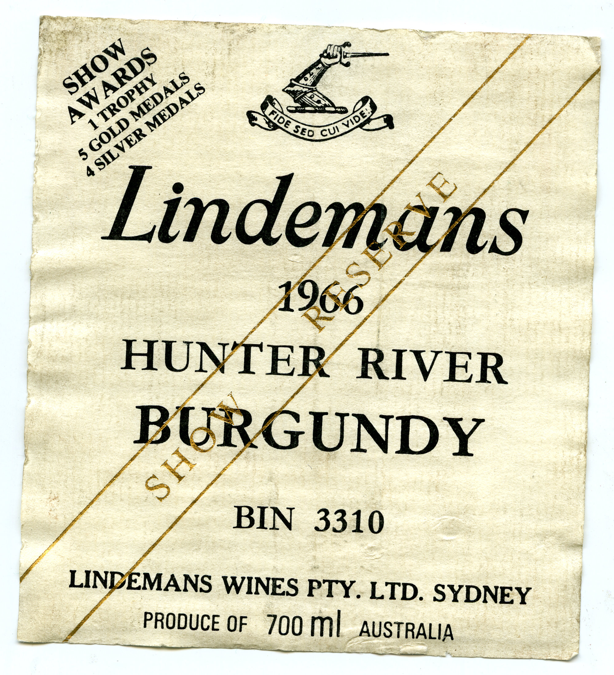 Lindemans Hunter River Burgundy label (1966) (1966). Living Histories, accessed 20/03/2026, https://livinghistories.newcastle.edu.au/nodes/view/61787