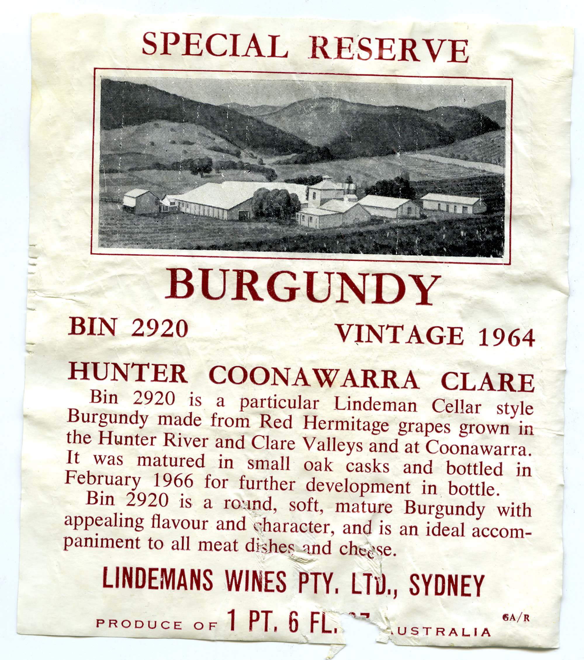 Lindemans Special Reserve Burgundy Label (1964) (1964). Living Histories, accessed 19/03/2026, https://livinghistories.newcastle.edu.au/nodes/view/61796