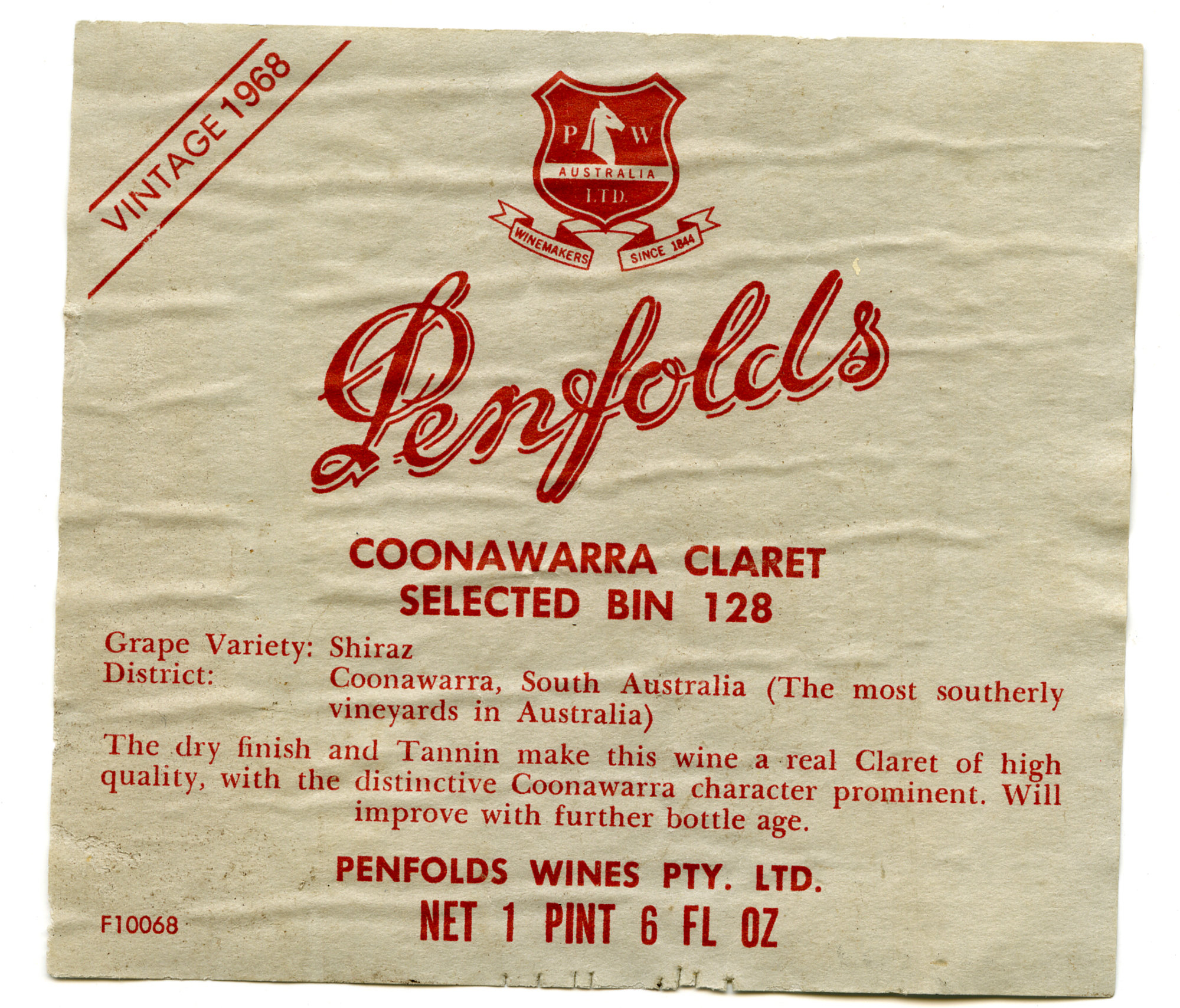 Penfolds Coonawarra Claret Label (1968) (1968). Living Histories, accessed 24/01/2026, https://livinghistories.newcastle.edu.au/nodes/view/62007