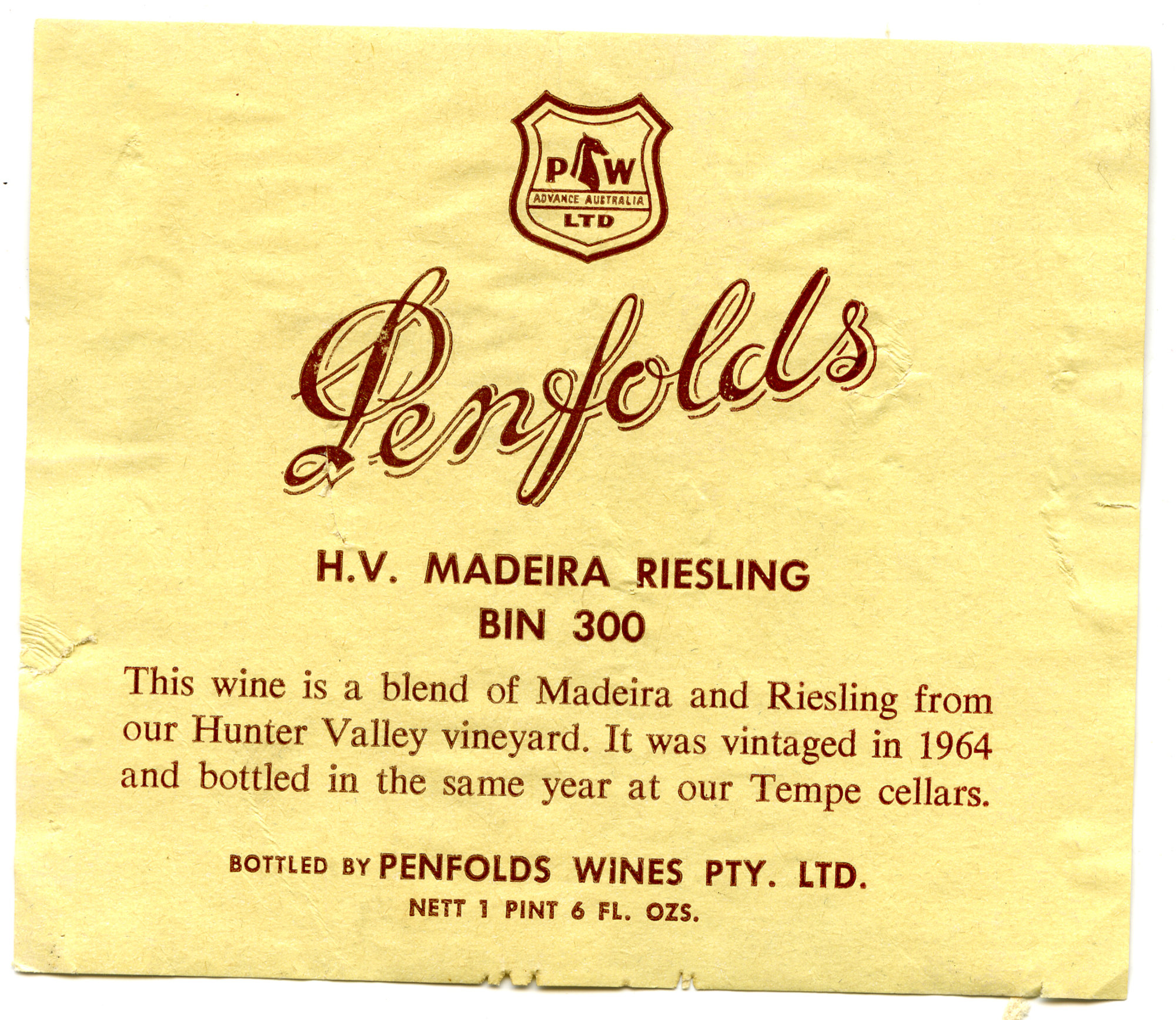 Penfolds H.V. Madeira Riesling Label (1964) (1964). Living Histories, accessed 06/03/2026, https://livinghistories.newcastle.edu.au/nodes/view/62059