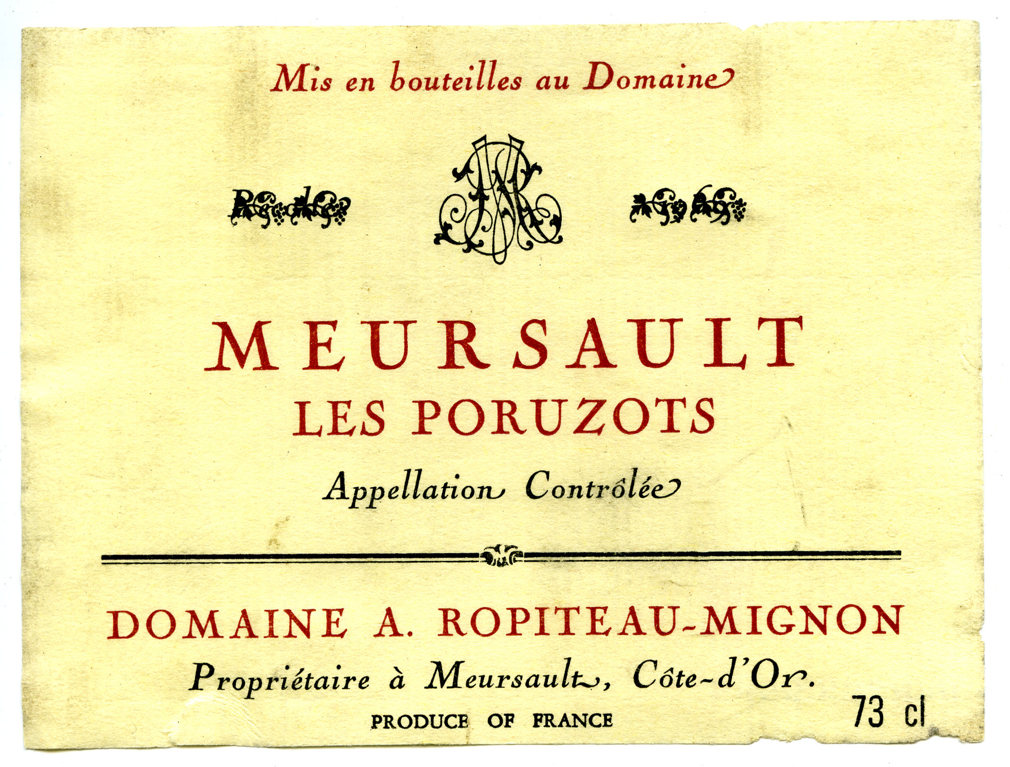 Mis en Bouteilles au Domaine Meursault Les Poruzots Label [n.d.]