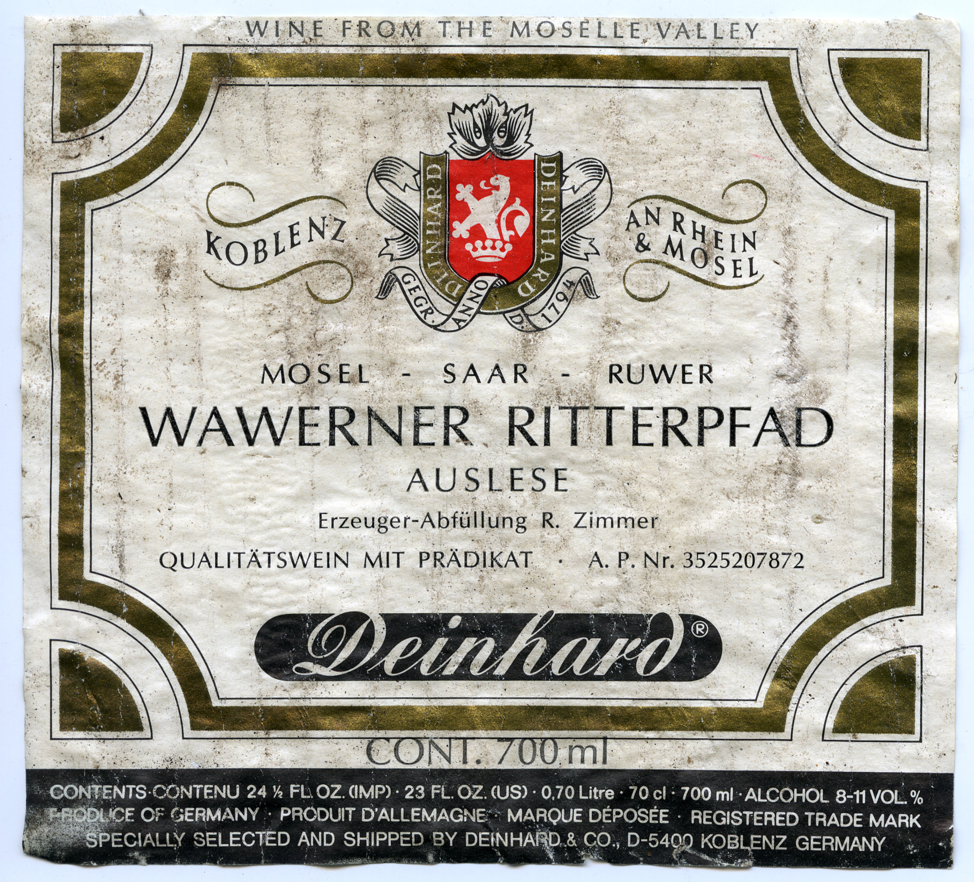 Deinhard Wawerner Ritterpfad Auslese Label [n.d.]. Living Histories, accessed 18/03/2026, https://livinghistories.newcastle.edu.au/nodes/view/62580