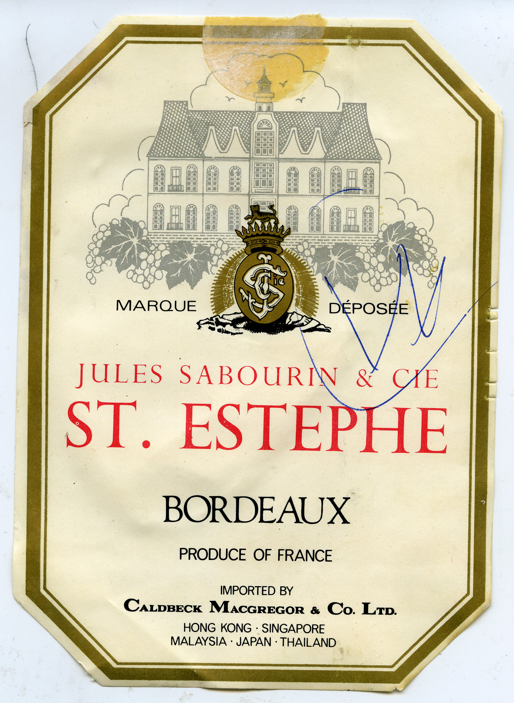 Jules Sabourin and Cie St. Estephe Bordeaux Label [n.d.]. Living Histories, accessed 18/03/2026, https://livinghistories.newcastle.edu.au/nodes/view/62716