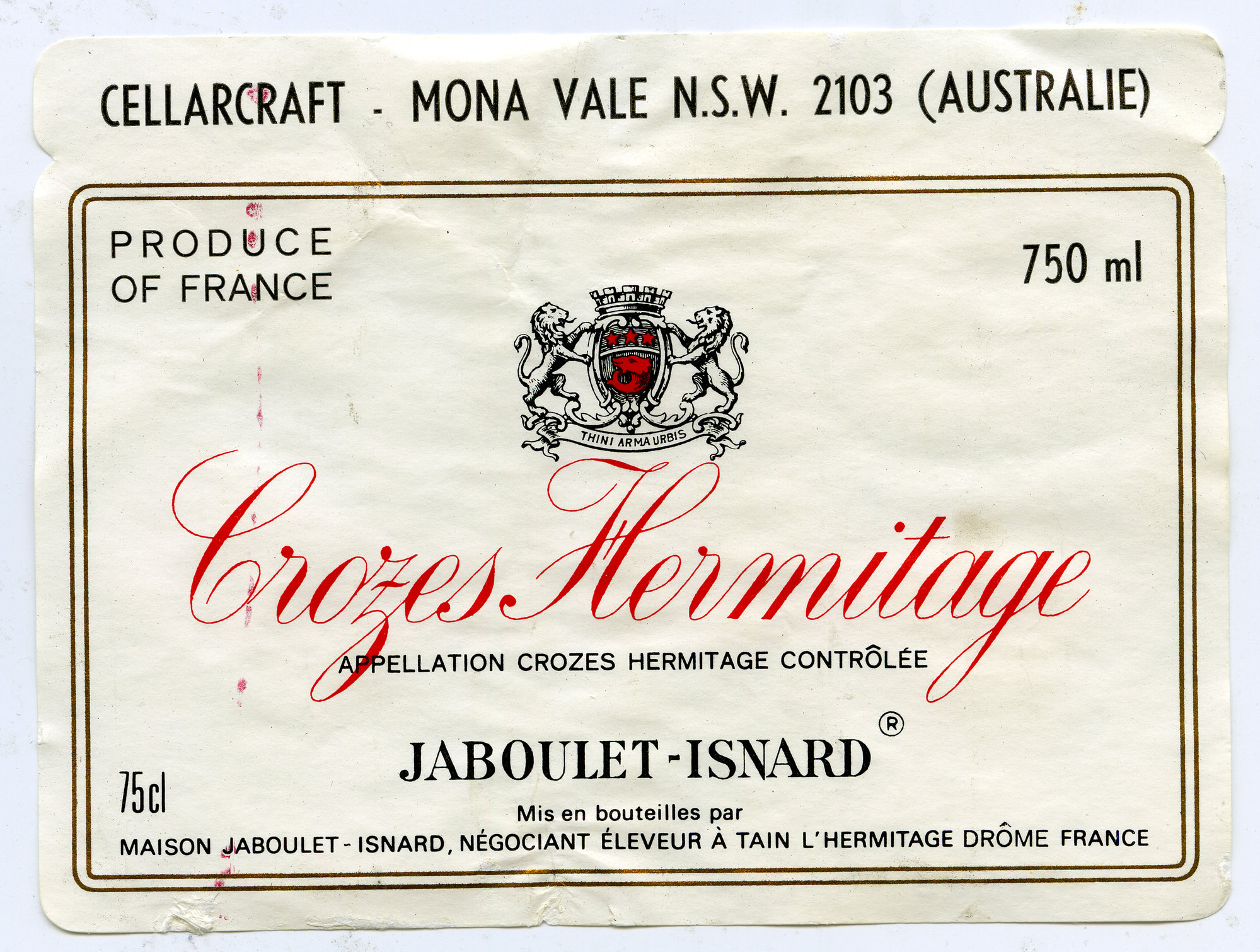 Maison Jaboulet Crozes Hermitage Label [n.d.]. Living Histories, accessed 08/03/2026, https://livinghistories.newcastle.edu.au/nodes/view/62719