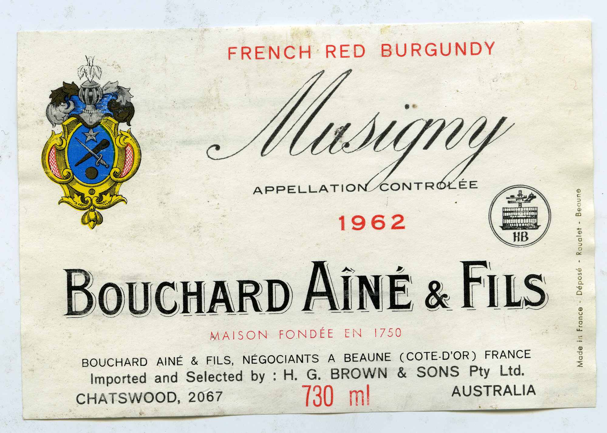 Bouchard Aine and Fils Musigny Label (1962) (1962). Living Histories, accessed 15/02/2026, https://livinghistories.newcastle.edu.au/nodes/view/62759