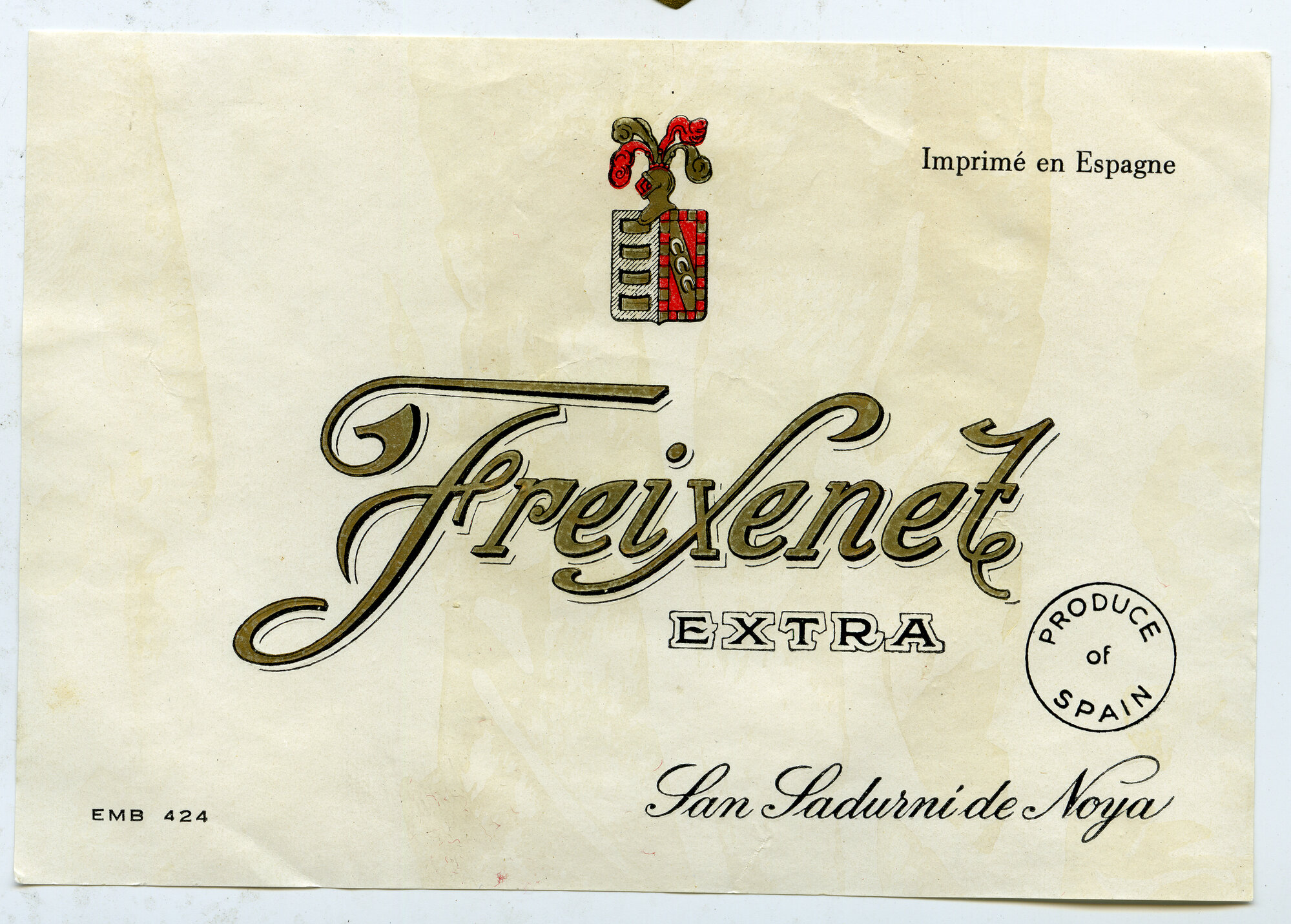 CollectorMorse, AllanLanguageSpanishDescriptionLabel reads: "Imprime en Espagne. Freixenet Extra. Produce of Spain. EMB 424. San Sadurni de Noya."