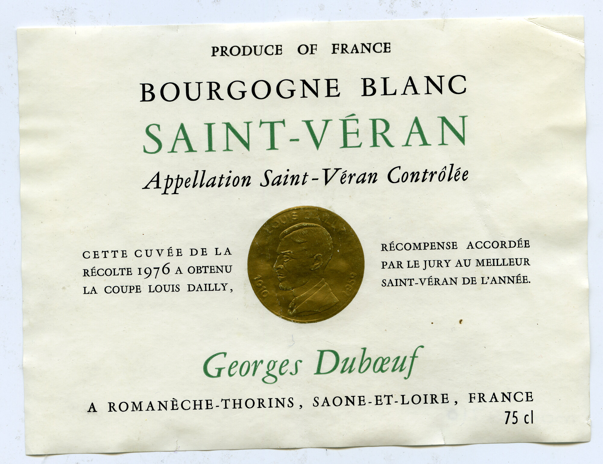 Georges Duboeuf Saint-Veran Label (1976) (1976). Living Histories, accessed 18/03/2026, https://livinghistories.newcastle.edu.au/nodes/view/62846