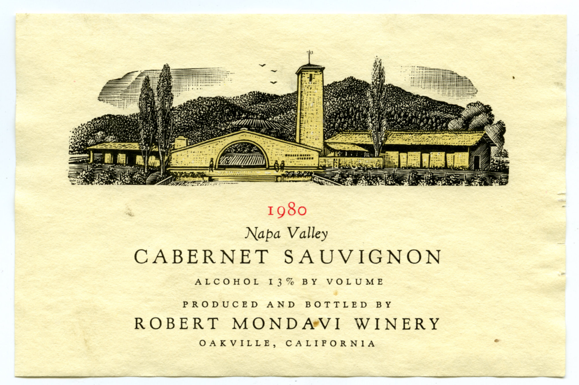 Robert Mondavi Cabernet Sauvignon Label (1980) (1980). Living Histories, accessed 20/03/2026, https://livinghistories.newcastle.edu.au/nodes/view/63000