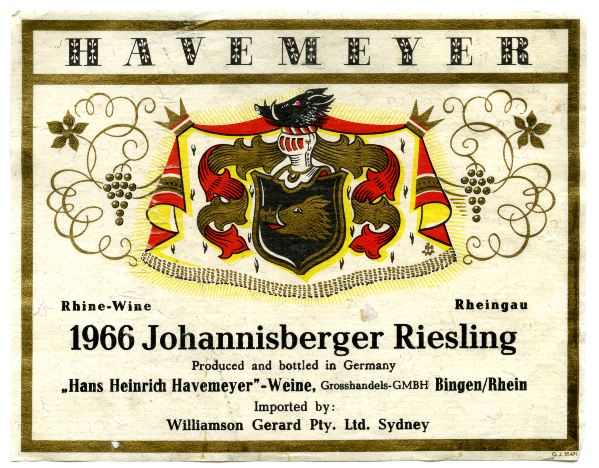 Havemeyer Johannisberger Riesling Label (1966) (1966). Living Histories, accessed 15/04/2026, https://livinghistories.newcastle.edu.au/nodes/view/63106