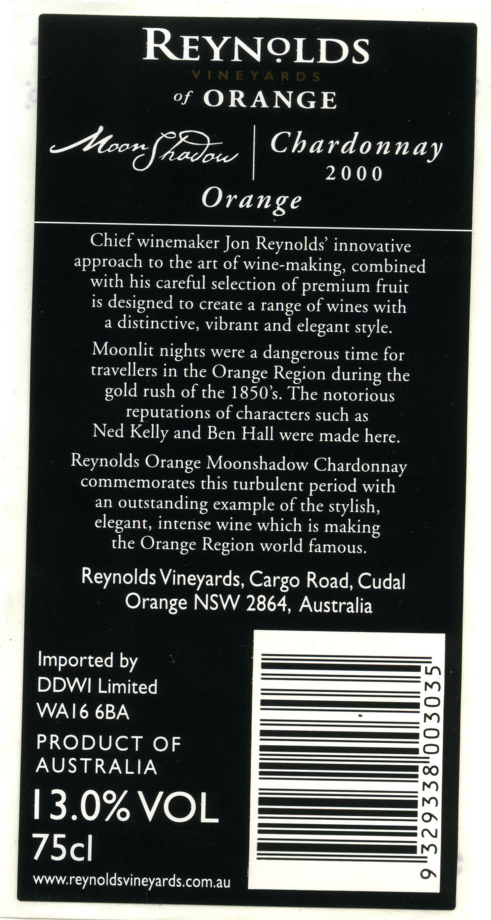 Reynolds Vineyards Chardonnay Label (2000) (2000). Living Histories, accessed 20/03/2026, https://livinghistories.newcastle.edu.au/nodes/view/63151