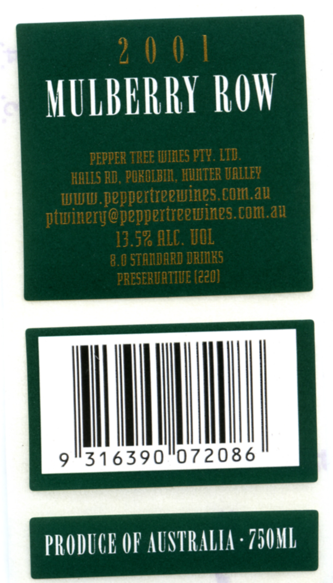 Pepper Tree Wines Mulberry Row Label (2001) (2001). Living Histories, accessed 15/04/2026, https://livinghistories.newcastle.edu.au/nodes/view/63184