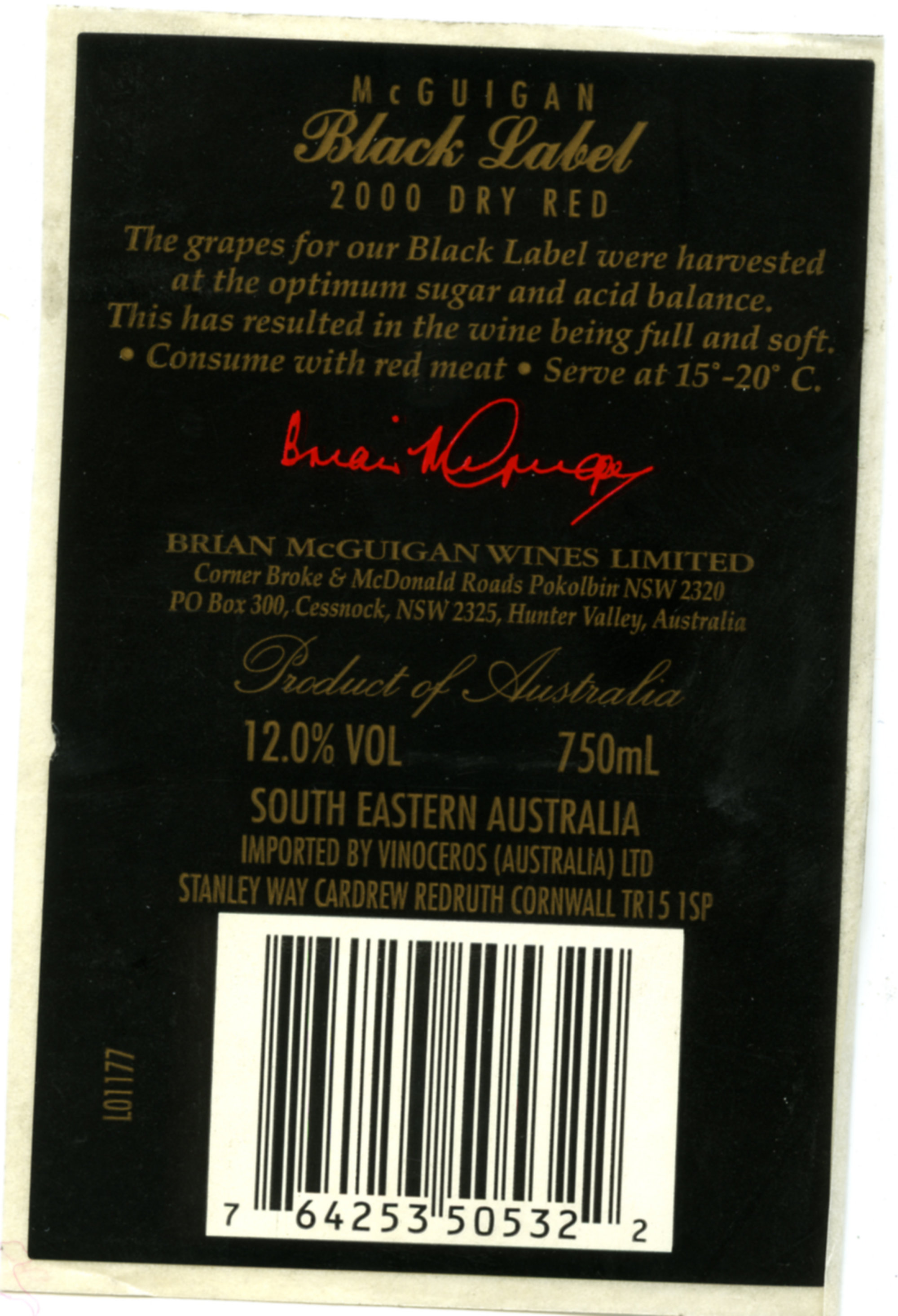 McGuigan Black Label Dry Red Label (2000) (2000). Living Histories, accessed 13/02/2026, https://livinghistories.newcastle.edu.au/nodes/view/63190