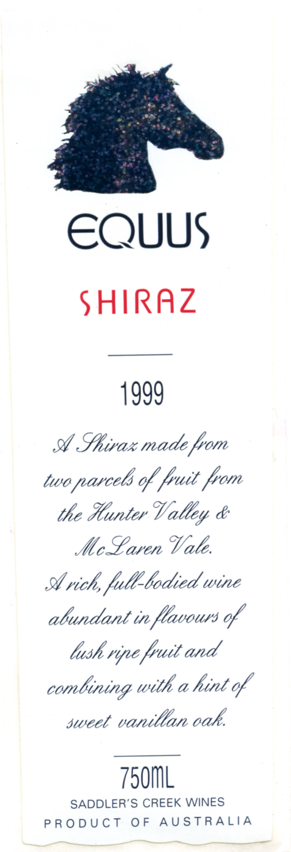 Saddler's Creek Wines Shiraz Label (1999) (1999). Living Histories, accessed 15/01/2026, https://livinghistories.newcastle.edu.au/nodes/view/63208