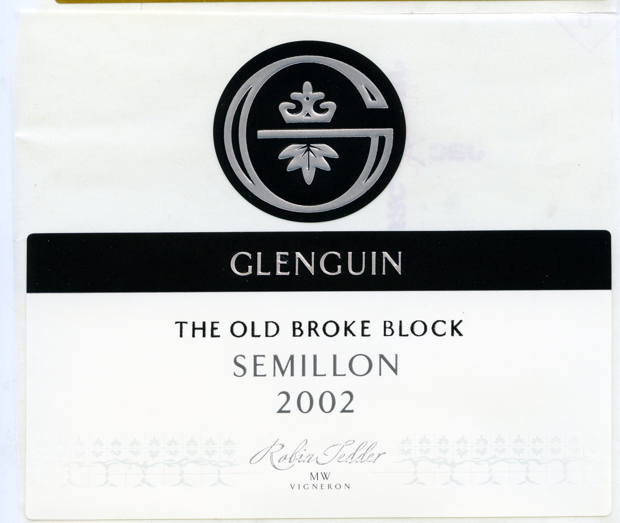 Label reads: "Glenguin. The old broke block. Semillon. 2002. Robin Tedder. MW. Vigneron."