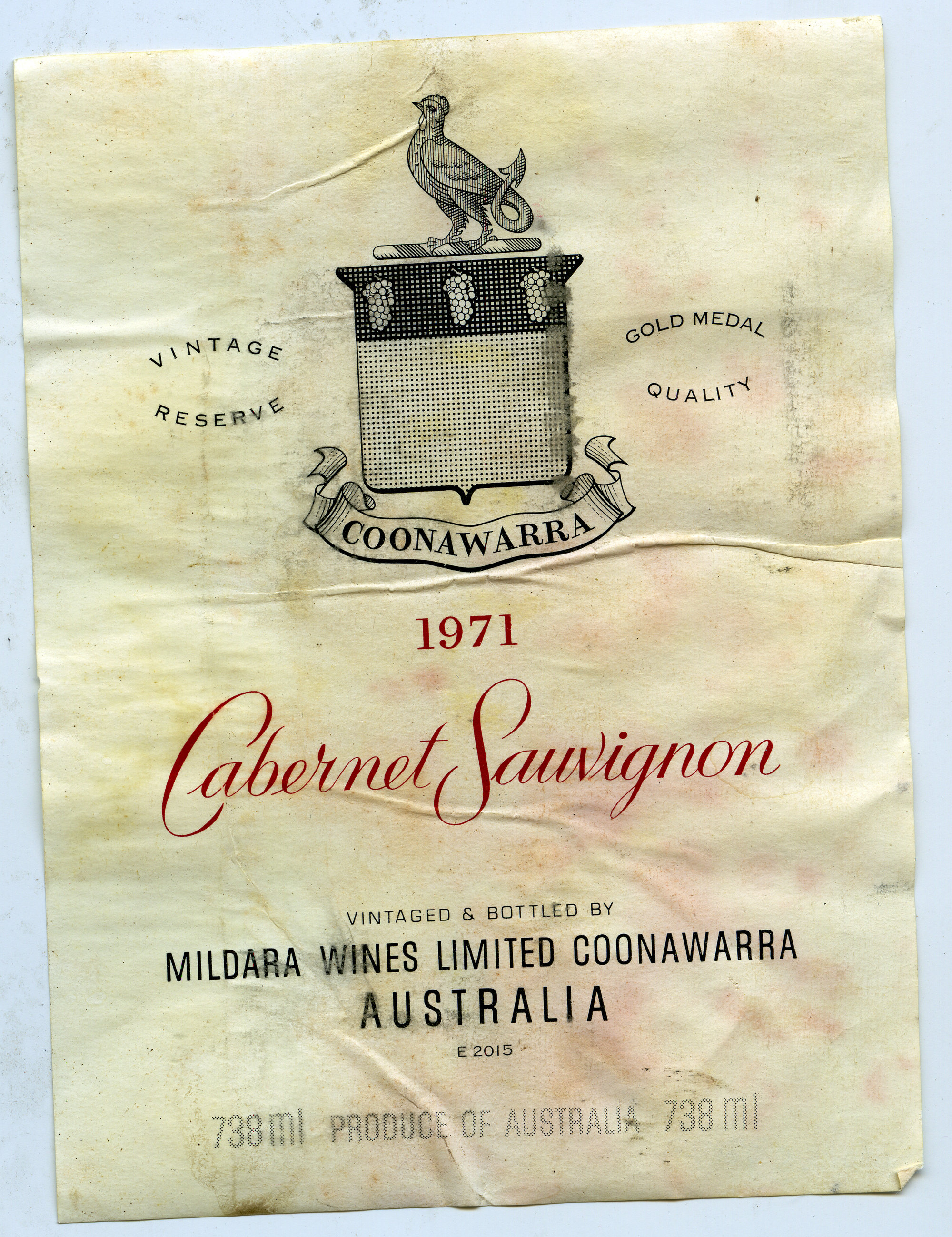 Mildara Cabernet Sauvignon Label (1971) (1971). Living Histories, accessed 11/04/2026, https://livinghistories.newcastle.edu.au/nodes/view/63414