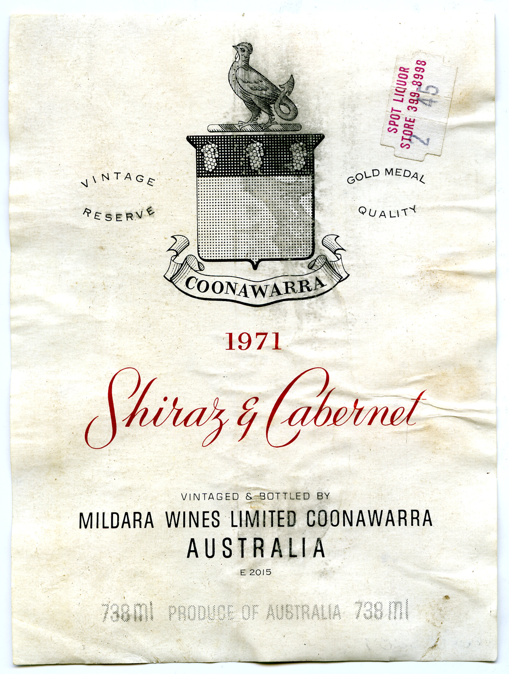 Mildara Shiraz and Cabernet Label (1971) (1971). Living Histories, accessed 08/02/2026, https://livinghistories.newcastle.edu.au/nodes/view/63424