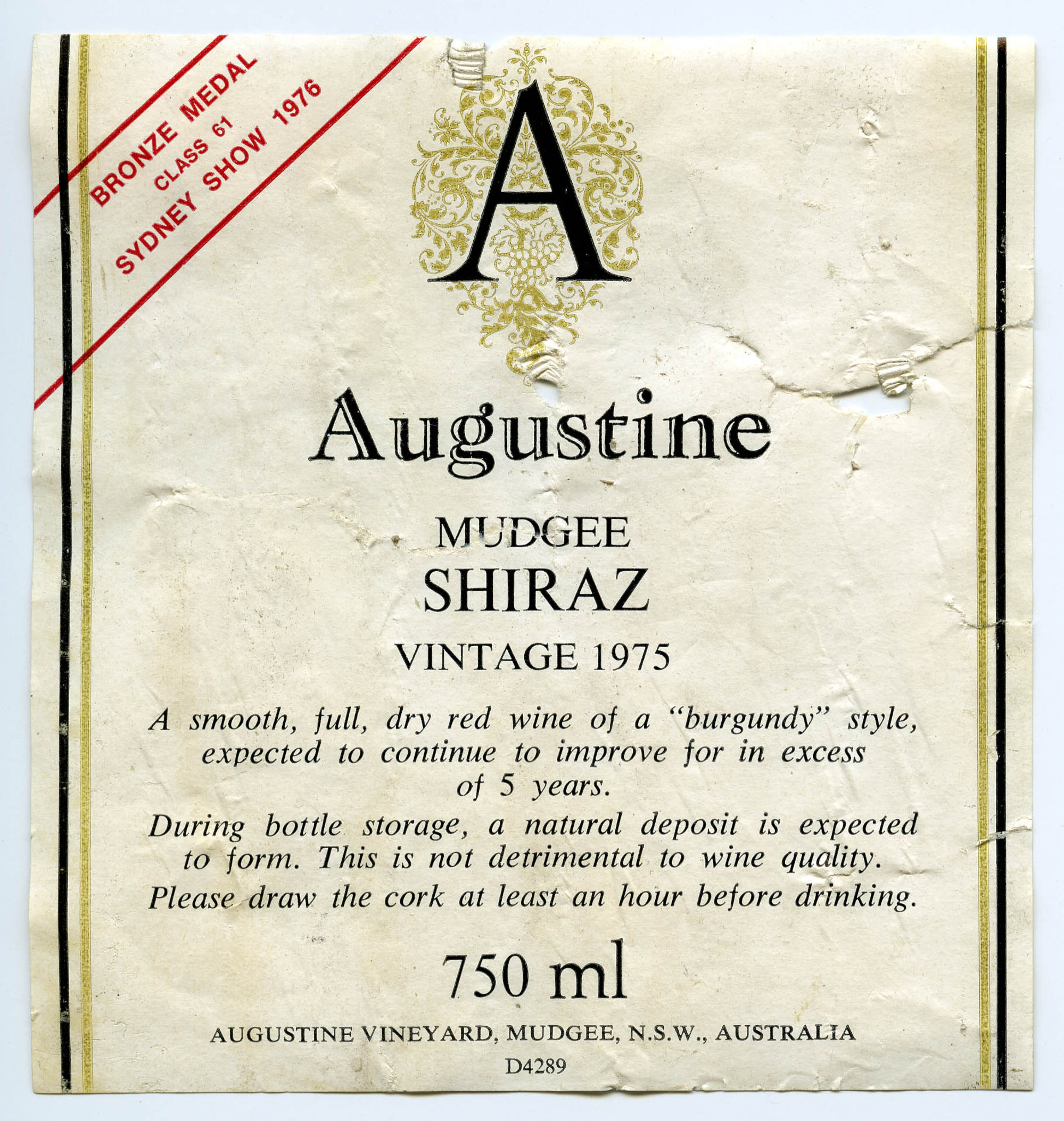 Augustine Vineyard Mudgee Label (1975) (1975). Living Histories, accessed 18/03/2026, https://livinghistories.newcastle.edu.au/nodes/view/64069