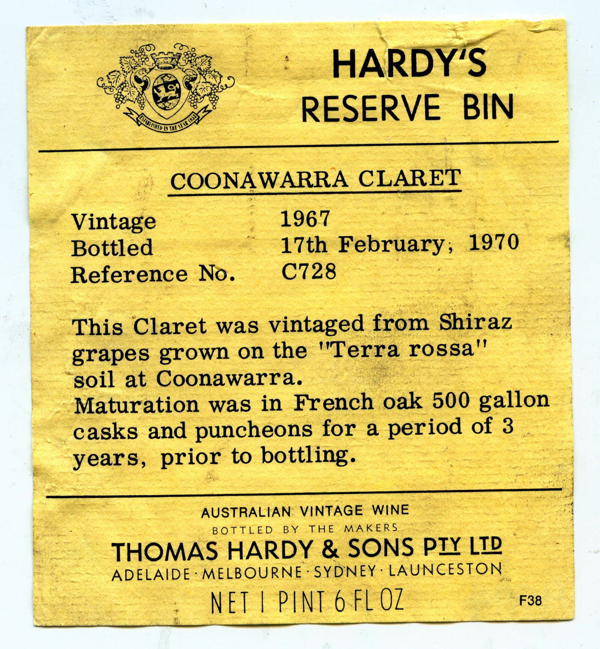 Thomas Hardy and Sons Pty. Ltd. Label (1967) (1967). Living Histories, accessed 15/04/2026, https://livinghistories.newcastle.edu.au/nodes/view/64123