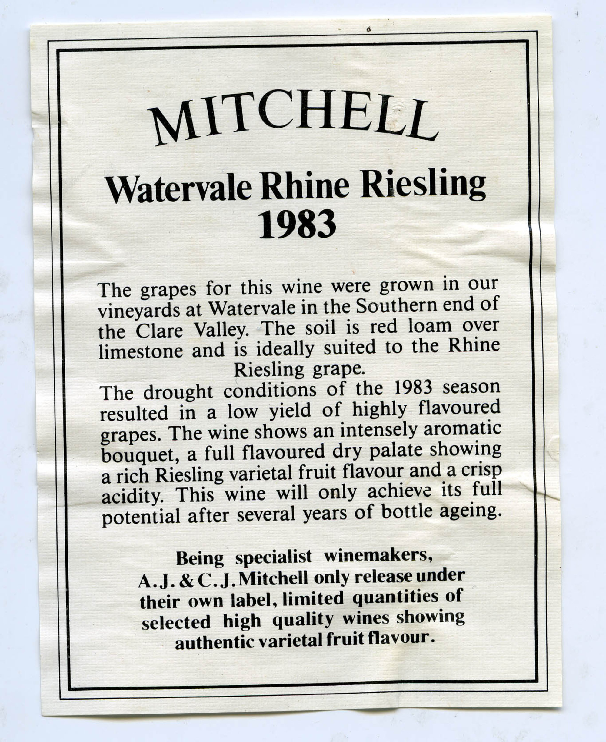A.J. and C.J. Mitchell Sevenhills S.A. Label (1983) (1983). Living Histories, accessed 20/03/2026, https://livinghistories.newcastle.edu.au/nodes/view/64176