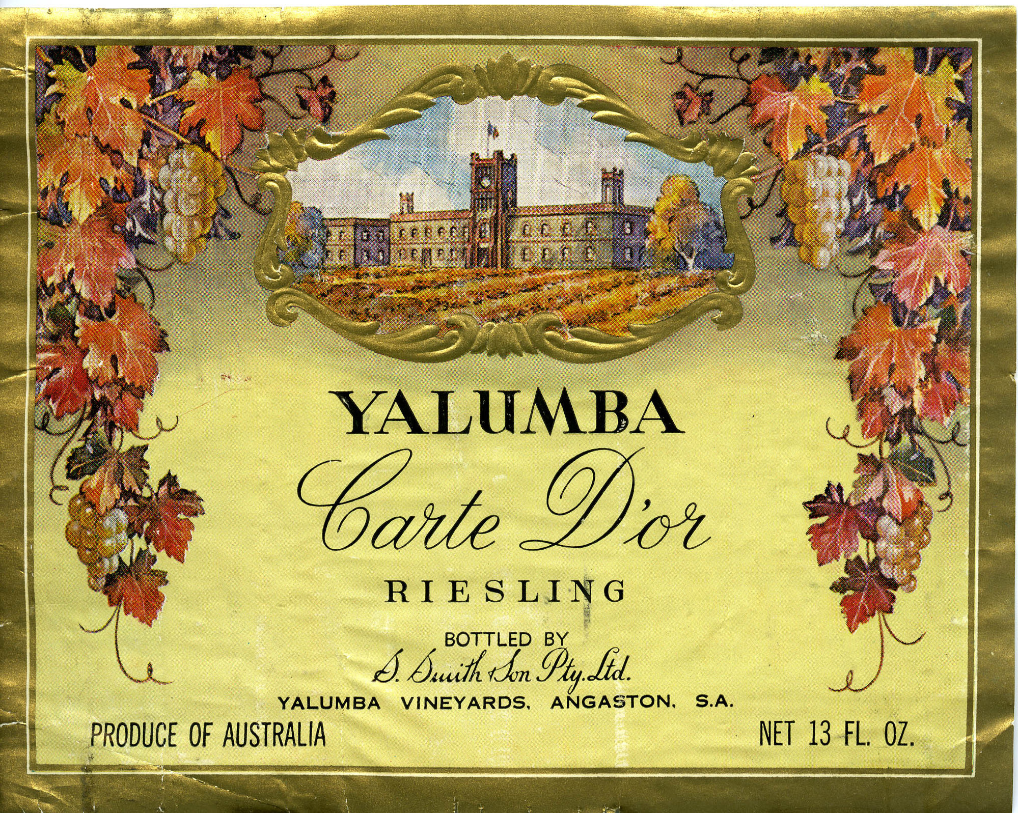 Label reads: "Yalumba CARTE D'OR RIESLING Bottled by S Smith and Son Pty.Ltd. Yalumba Vineyards Angaston S.A. Produce of Australia Net 13 Fl. Oz."