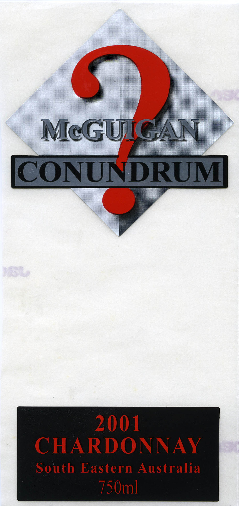 Label reads: "McGuigan Conundrum 2001 Chardonnay South Eastern Australia 750ml"
