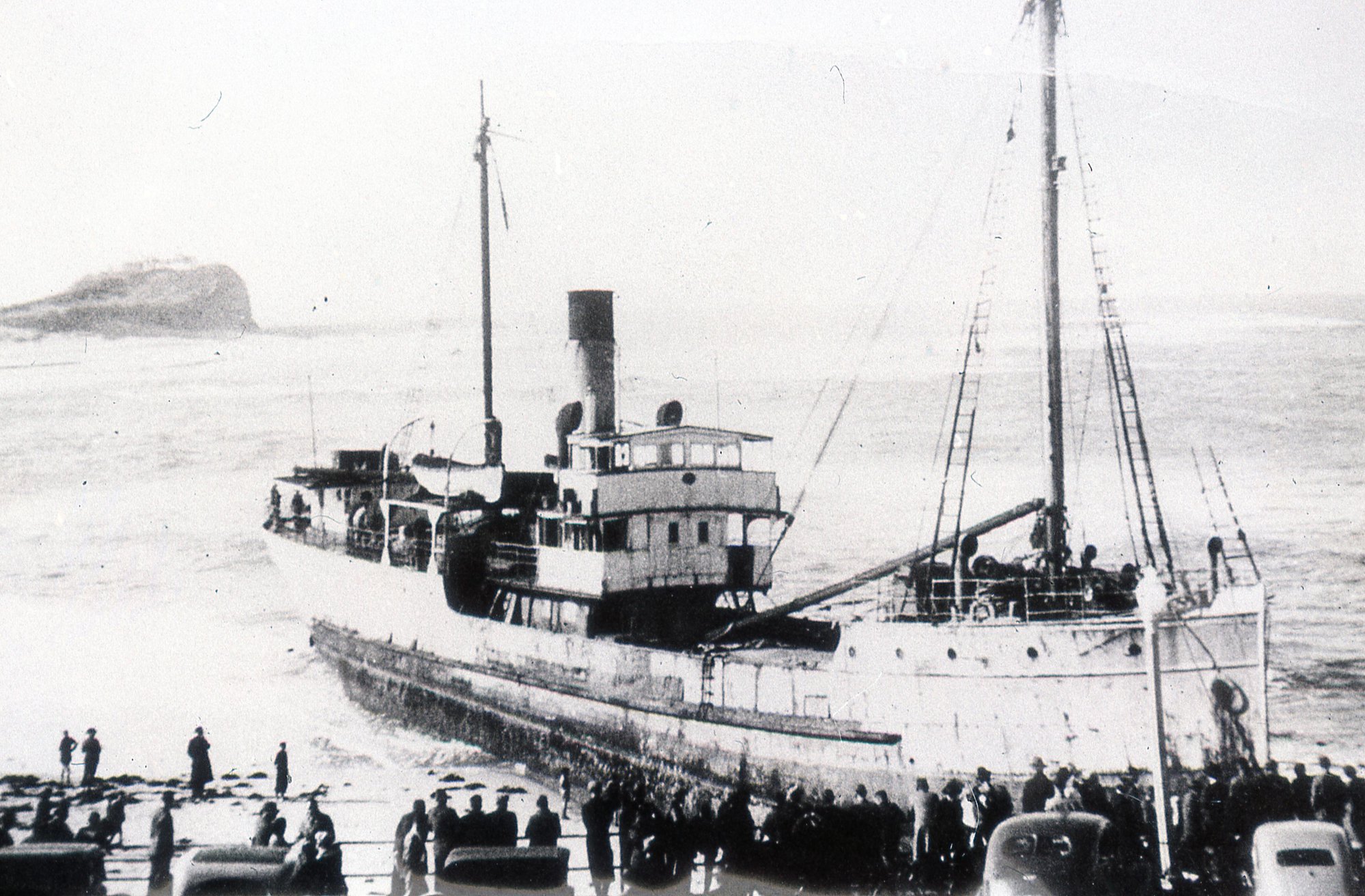"Mainbar" aka "Maianbar" beached near Nobbys Beach, NSW, 1940 (1940), [C917-0234]. Living Histories, accessed 18/03/2026, https://livinghistories.newcastle.edu.au/nodes/view/6523
