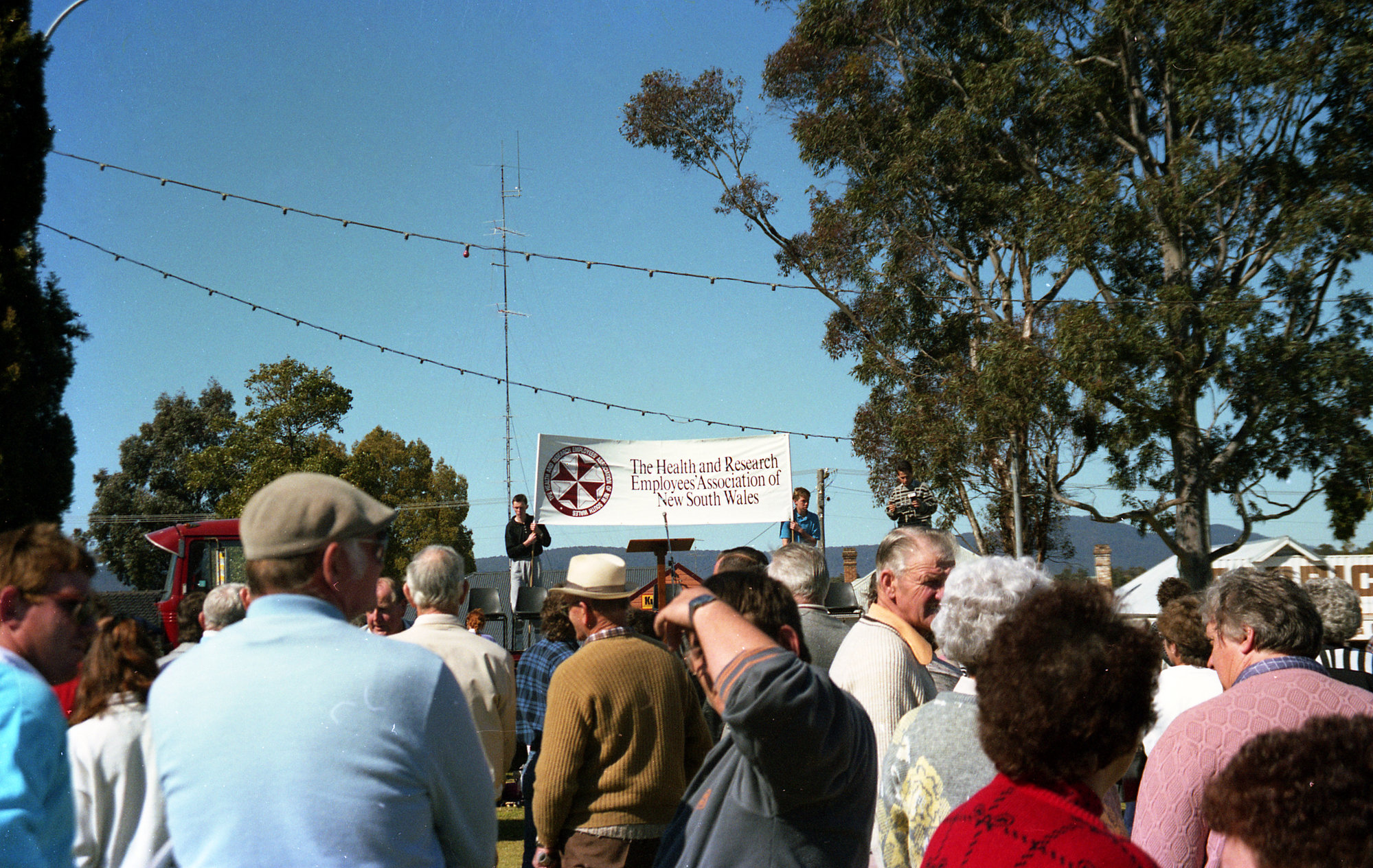 Sternbeck, Percival William, 1921-2004, Crowd at the Save Kurri Hospital Rally in Rotary Park, Kurri Kurri, NSW, September 1989 (Between 1st September 1989 and 30th September 1989), [ Sternbeck_Bk24_Sep89_012]. Living Histories, accessed 24/01/2026, https://livinghistories.newcastle.edu.au/nodes/view/65269