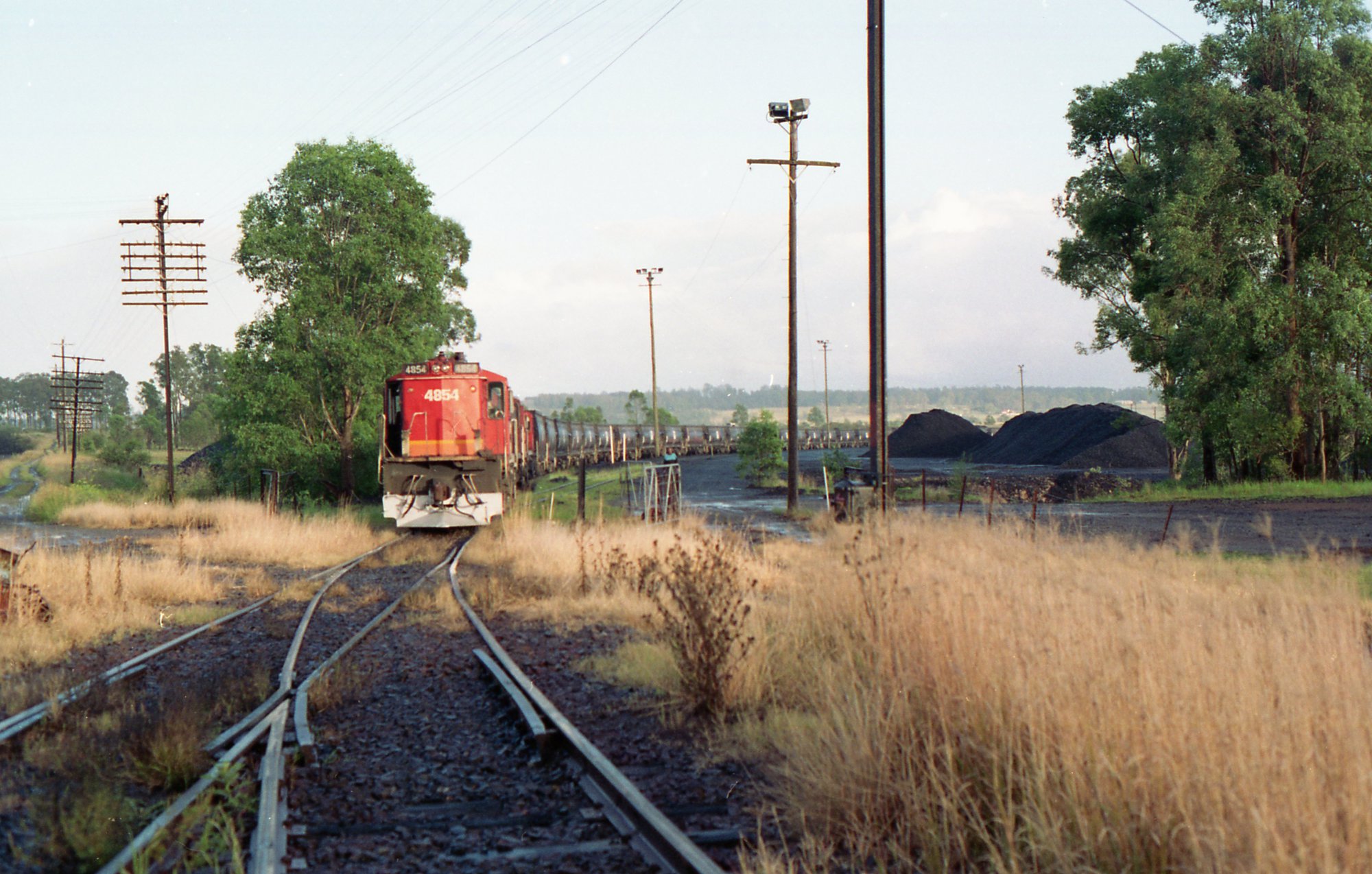 Early 1995, a coal train at the Liverpool sidings at Branxton, NSW