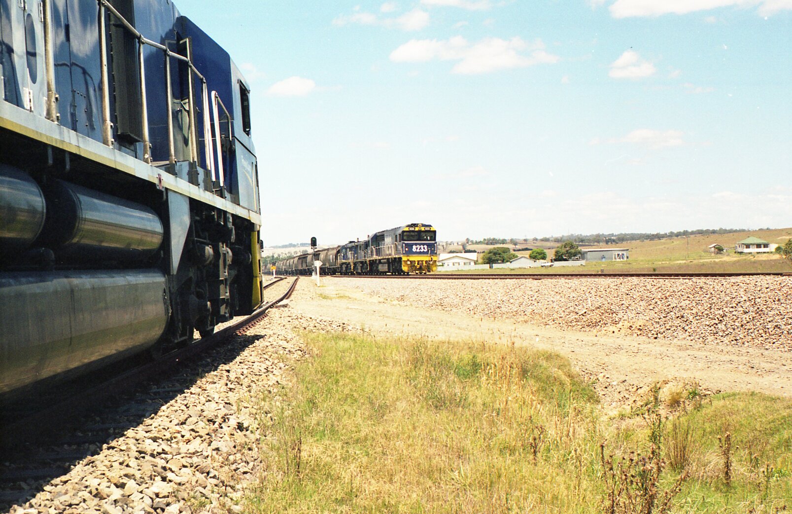 Sansom, Peter, At Glennies Creek 8223 and two 48 class locos head north as a coal train waits for the road off the Mt. Owen Branch., [236_werris_sansom]. Living Histories, accessed 15/01/2026, https://livinghistories.newcastle.edu.au/nodes/view/65818
